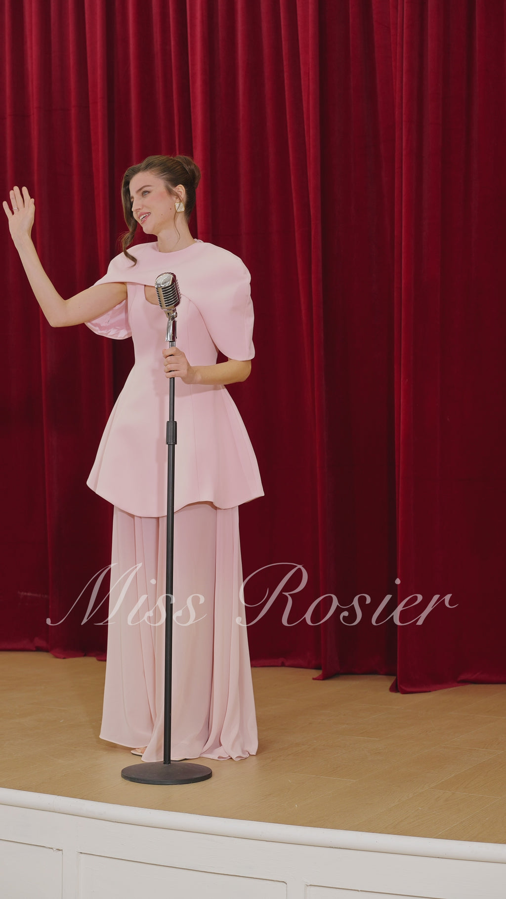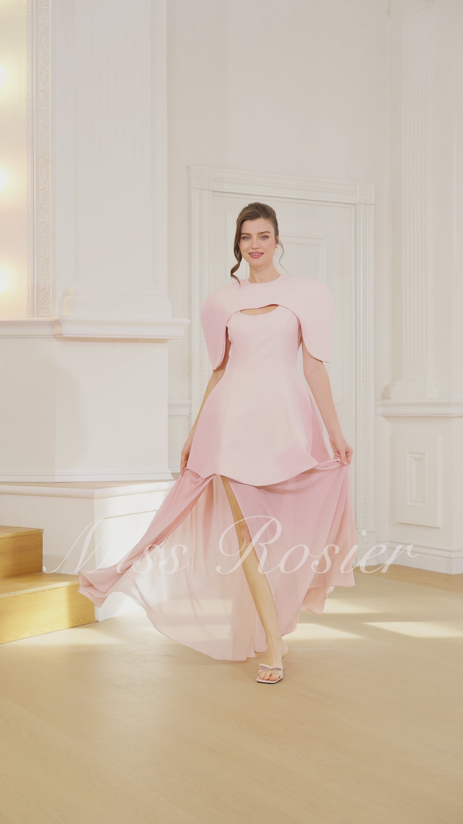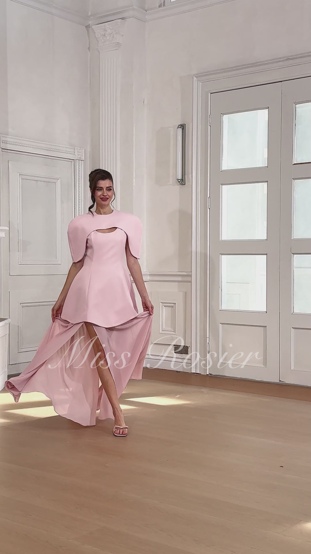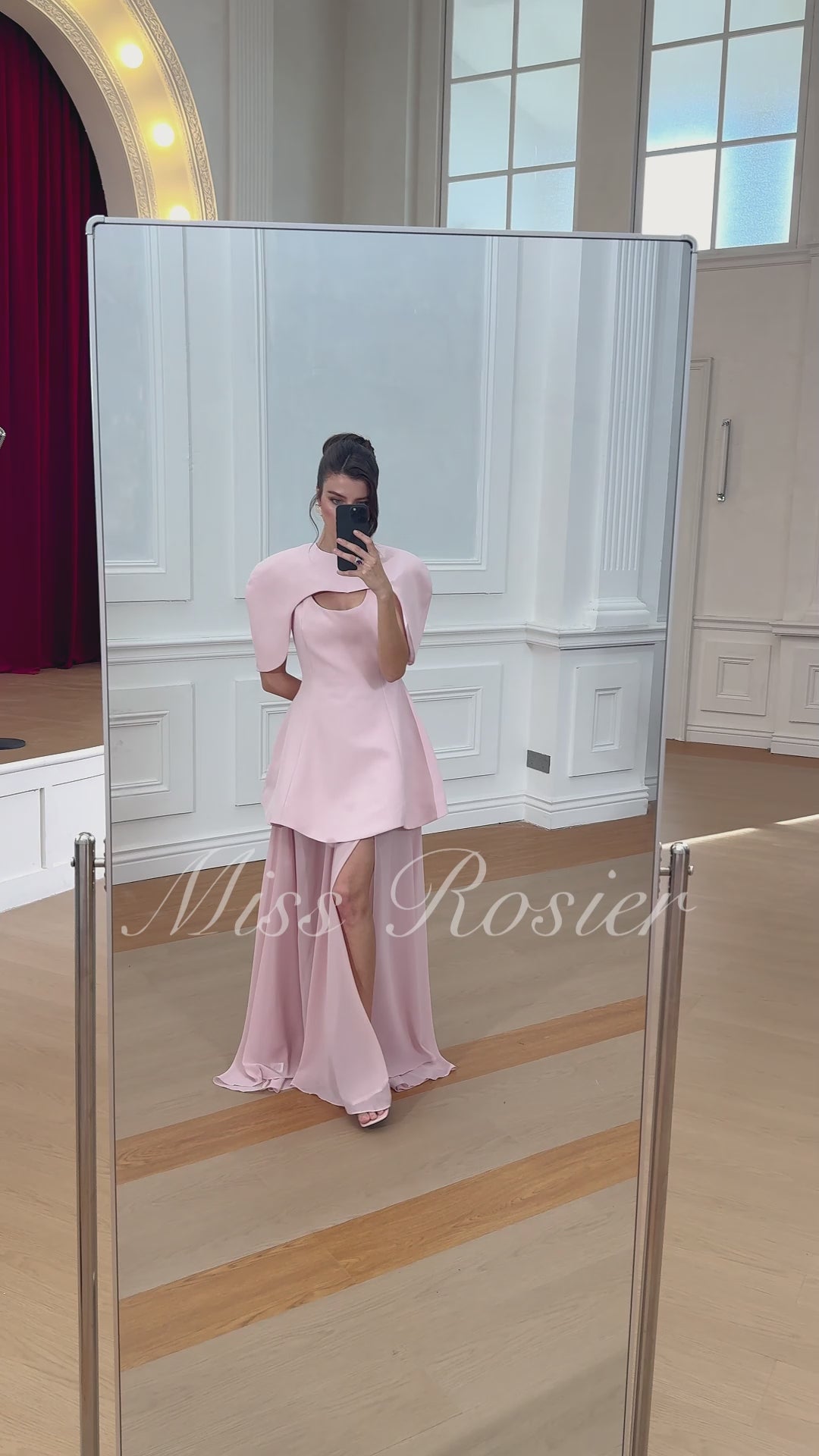 طقم فستان ماكسي طويل ذو طبقات ووشاح من تصميم أوريان، باللون الوردي.
