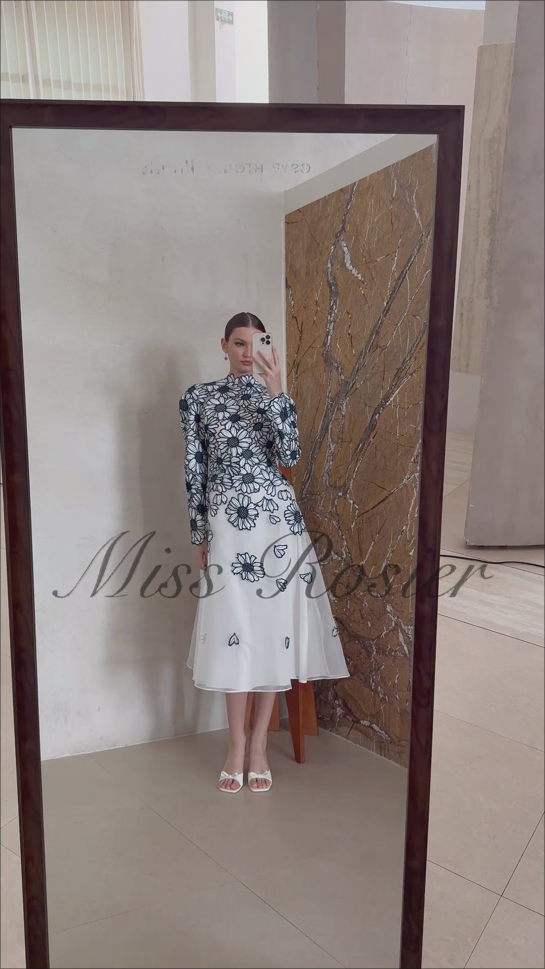 فستان كاميو أزرق متوسط الطول من التول المطرز