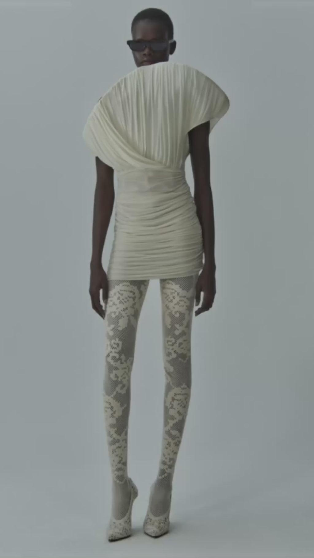فستان قصير غير متماثل ومكشكش من فيليسيا، لون أبيض كريمي
