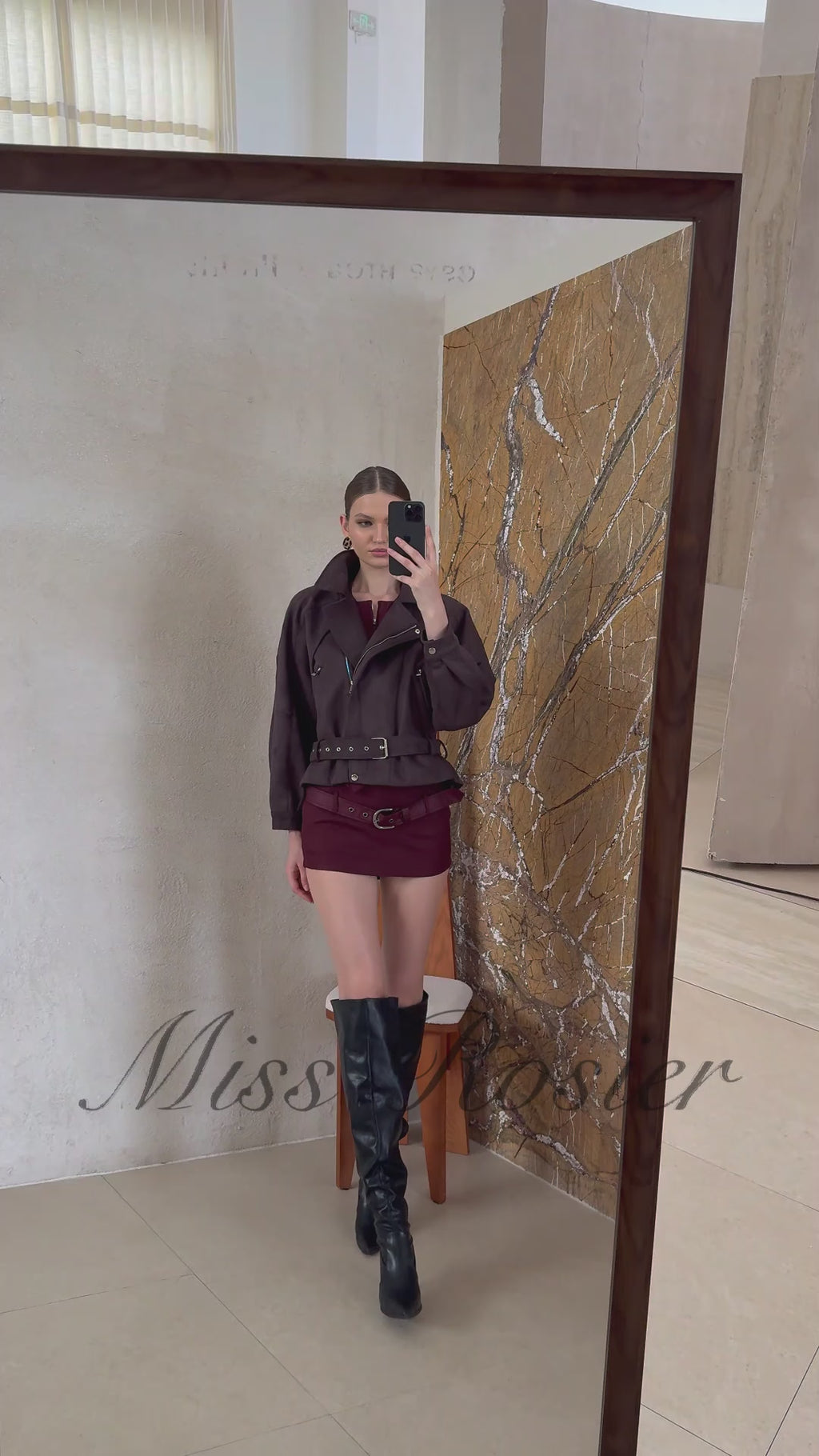 جاكيت راكب الدراجة الجلد المدبوغ المرقع بحزام من لورا براون