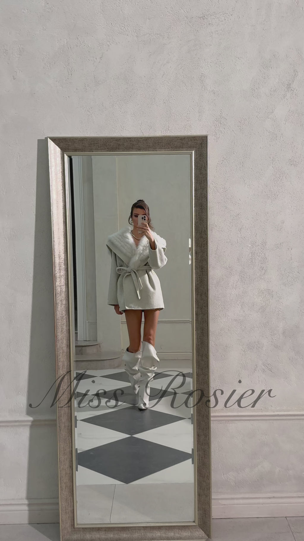معطف لويز جراي من الصوف مع حواف من الفرو