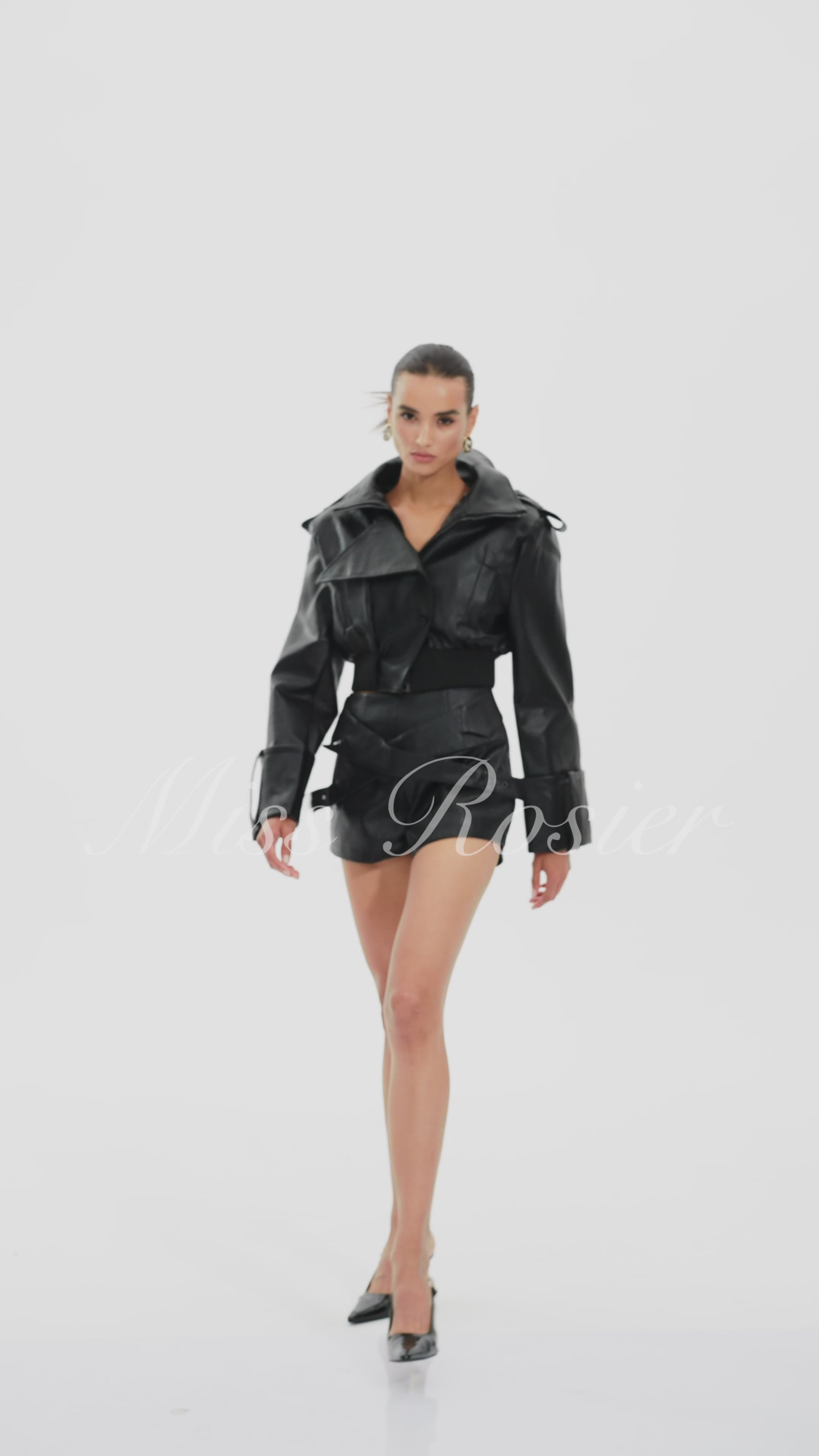 طقم جاكيت وشورت من الجلد الأسود من مانون