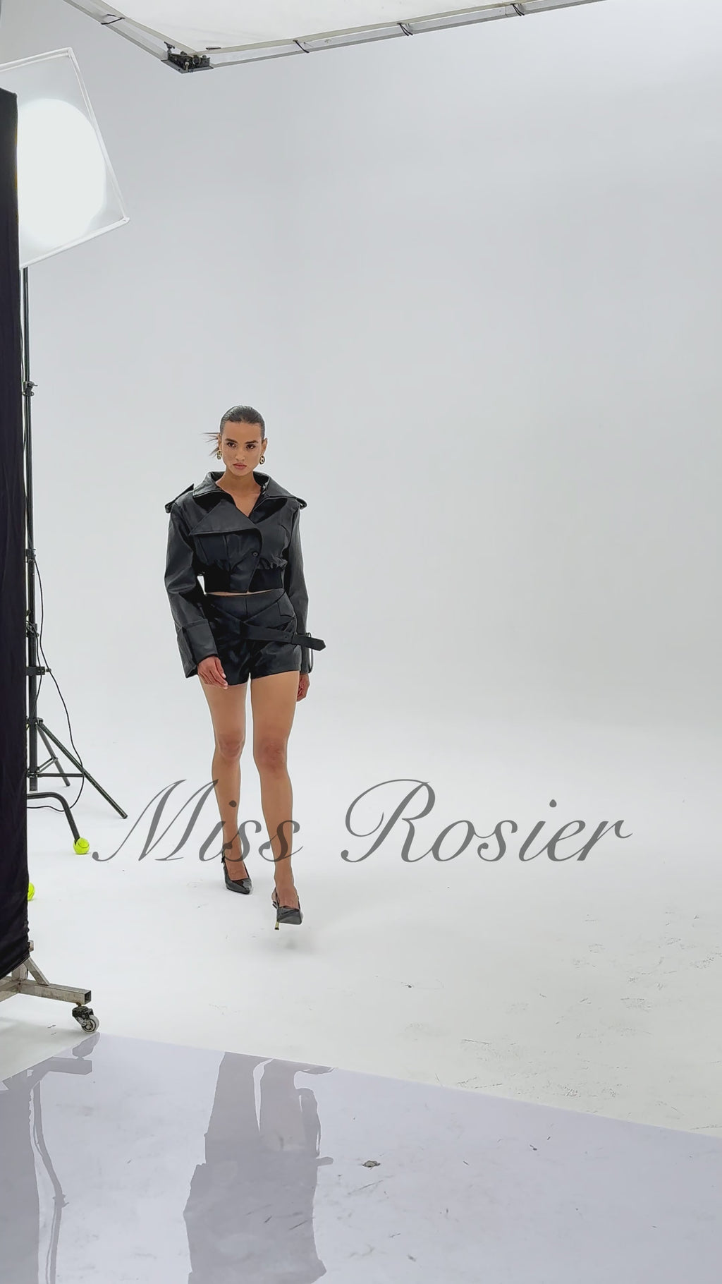 طقم جاكيت وشورت من الجلد الأسود من مانون