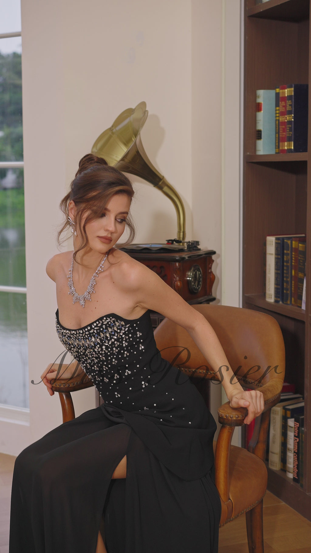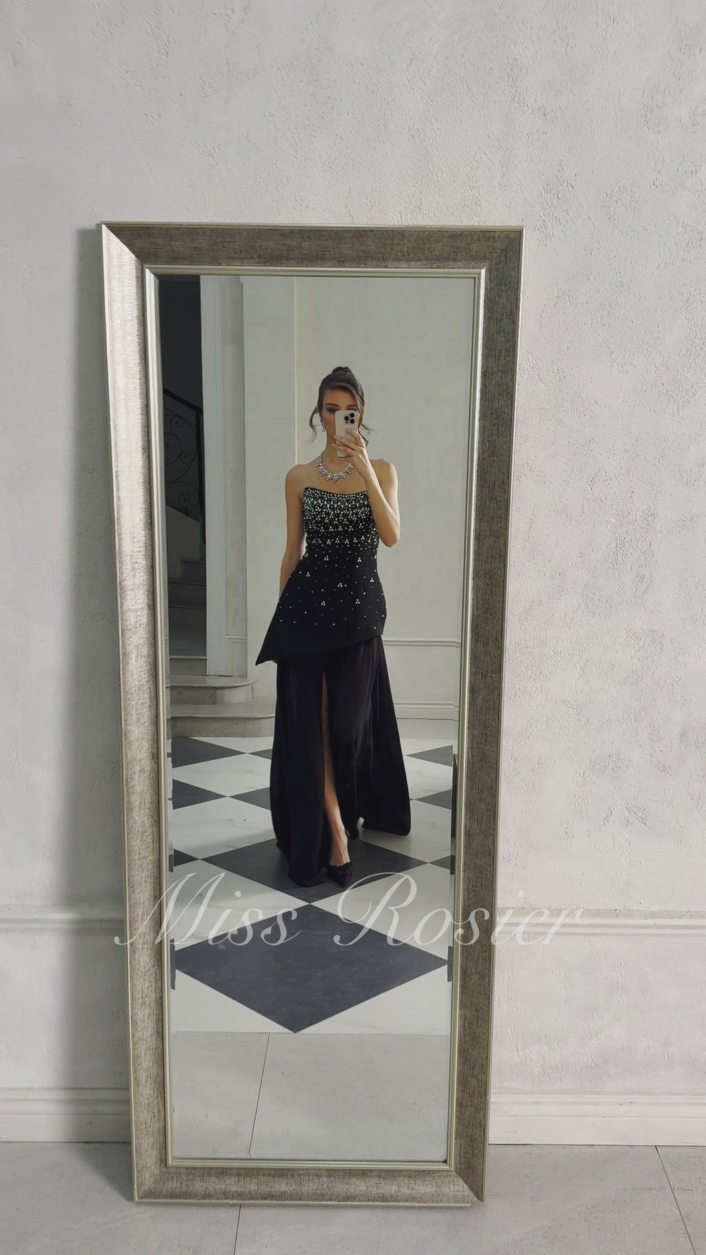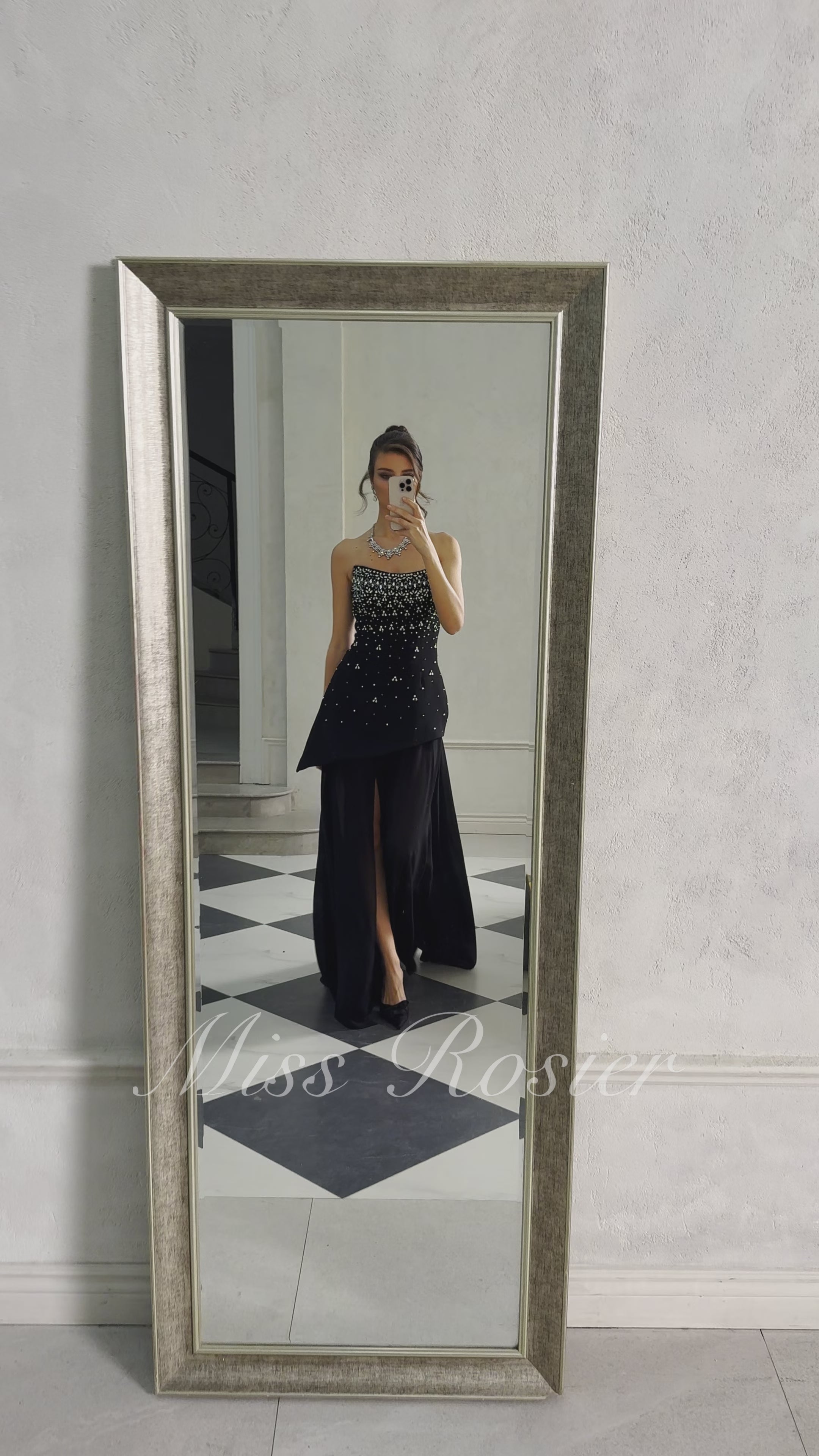 طقم فستان وتنورة مزينين باللون الأسود من ميليساند