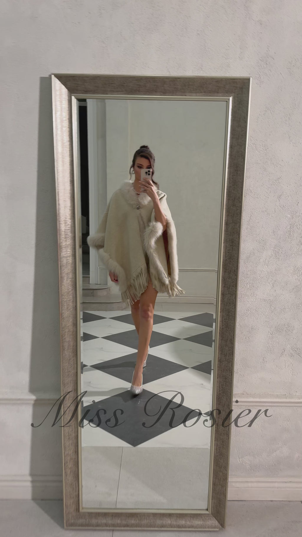 عباءة ريناتا الصوفية ذات الحواف المزينة بالفرو بلون محايد
