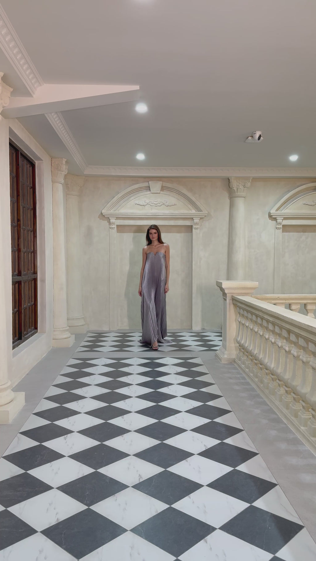 فستان ماكسي ساتان أرجواني مطوي بالكامل