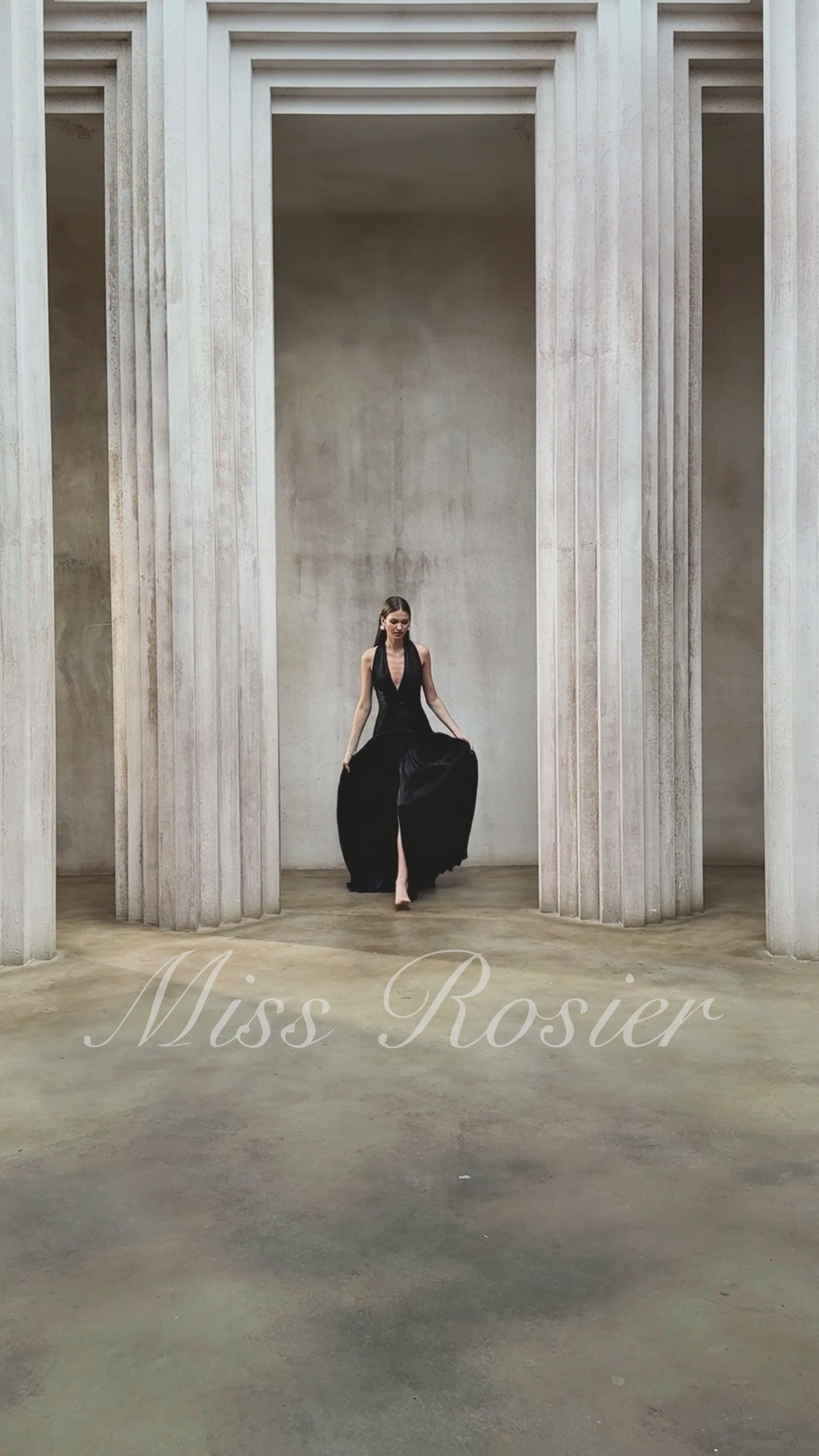 فستان ماكسي مكسّر باللون الأسود من يوراني