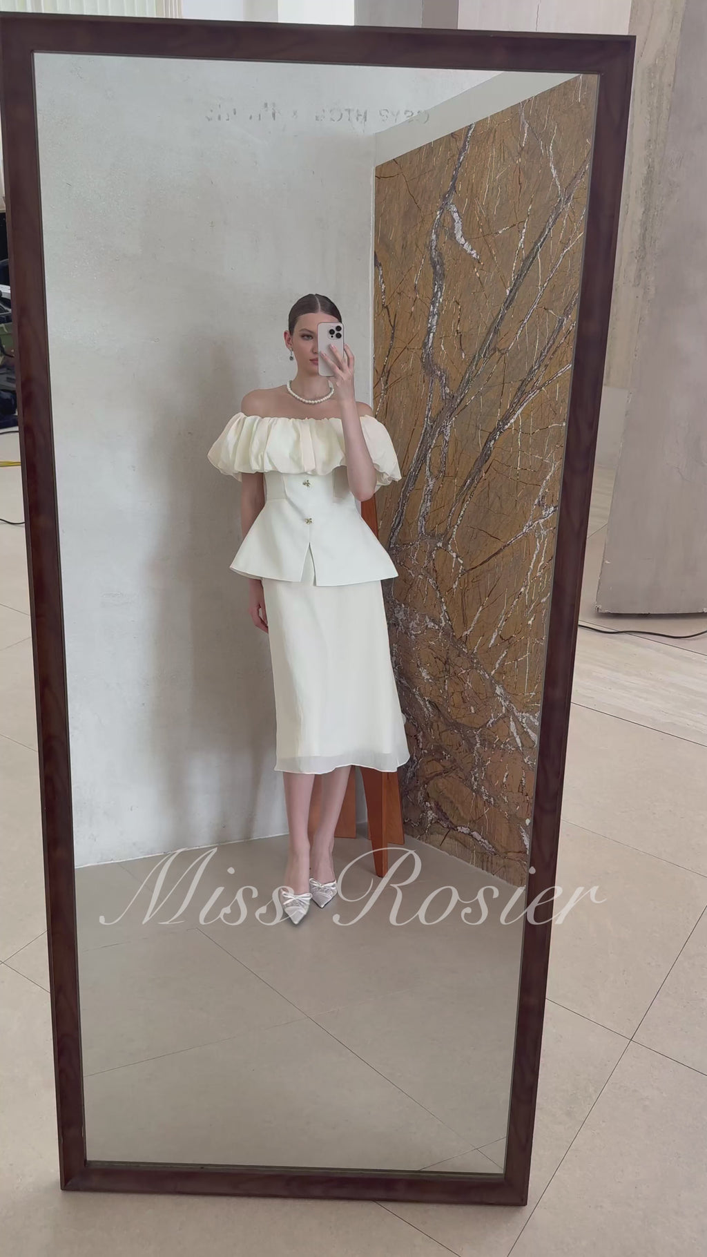 طقم توب وتنورة ديانت الأبيض مكشوف الأكتاف ذو الطيات