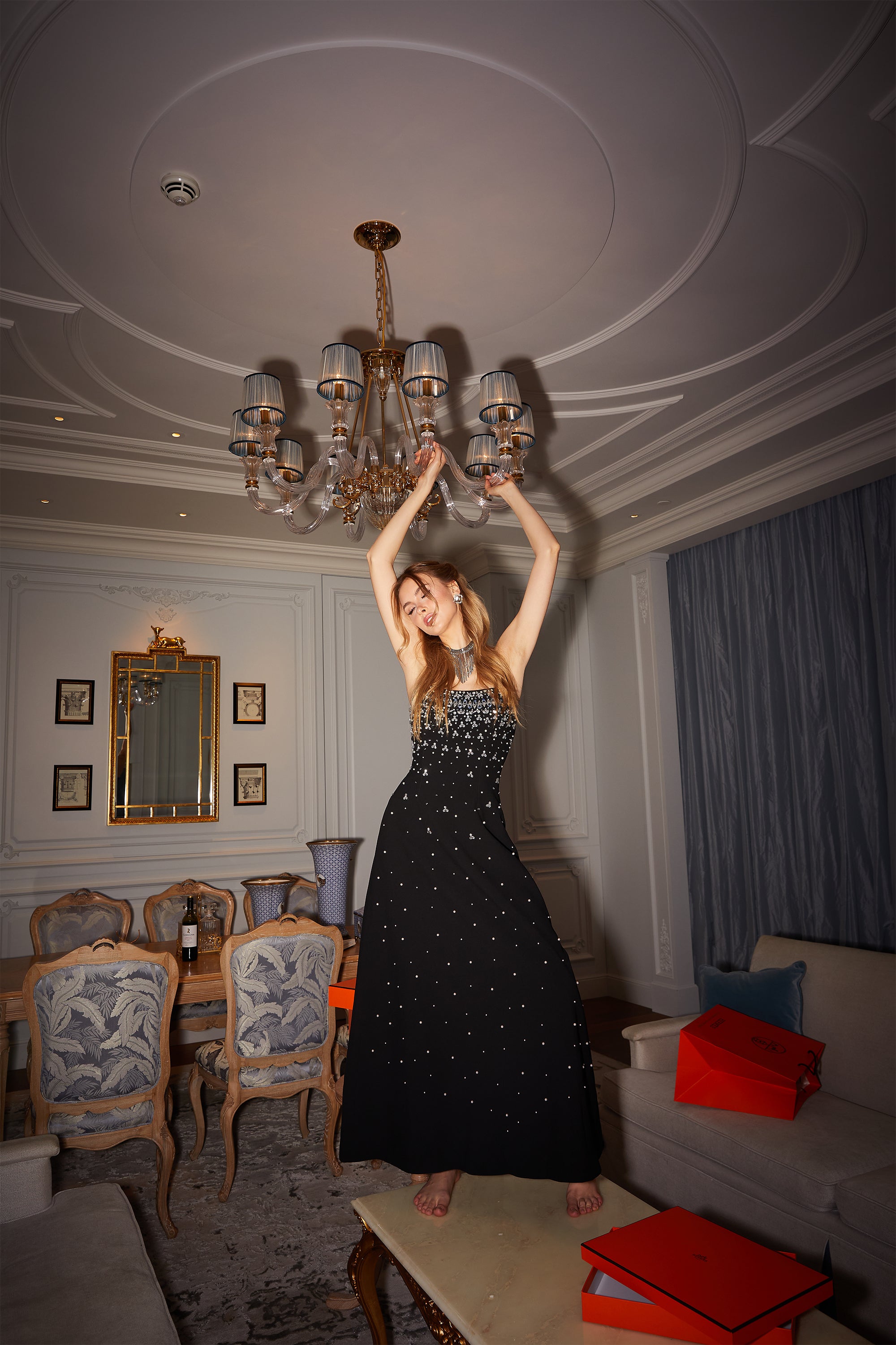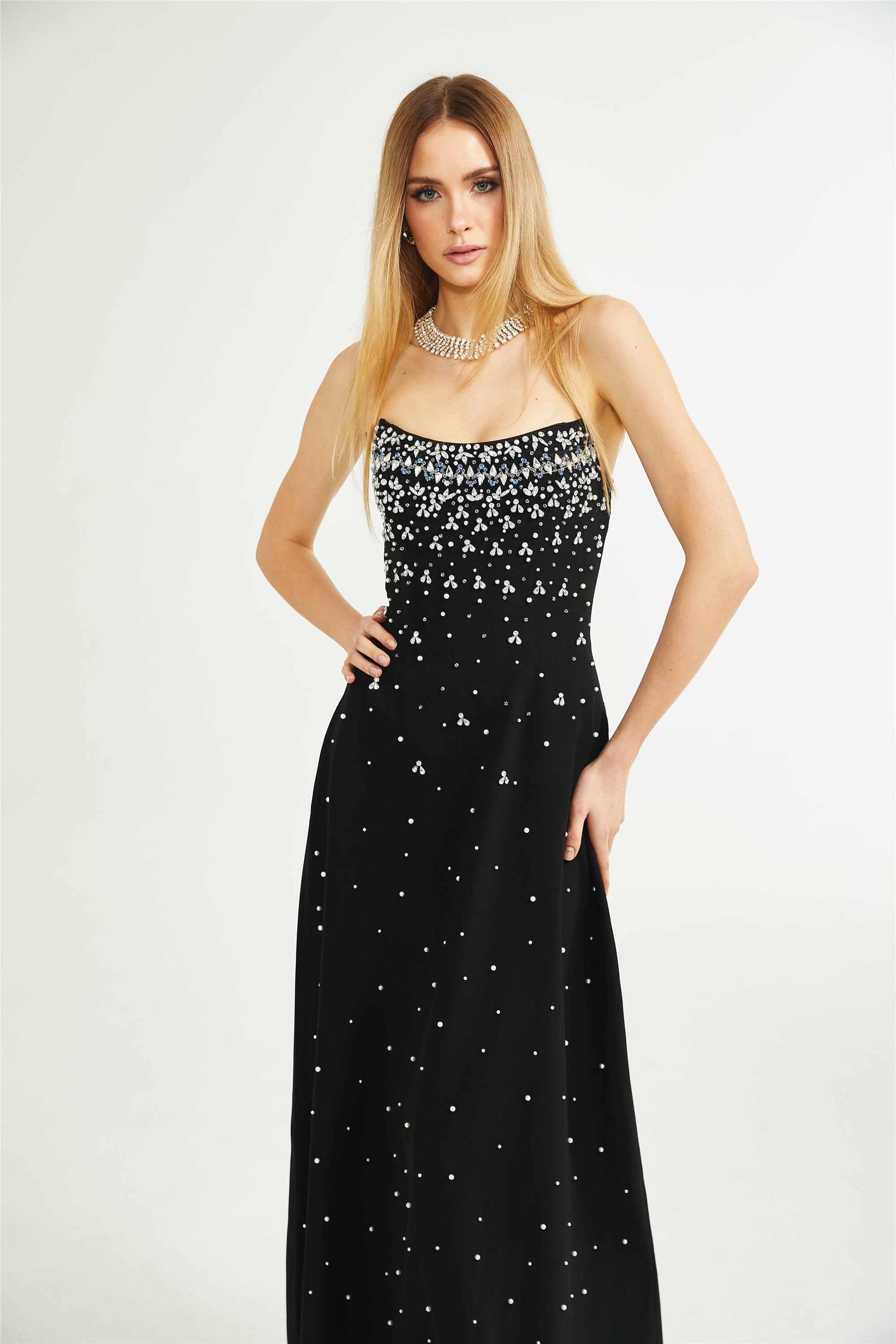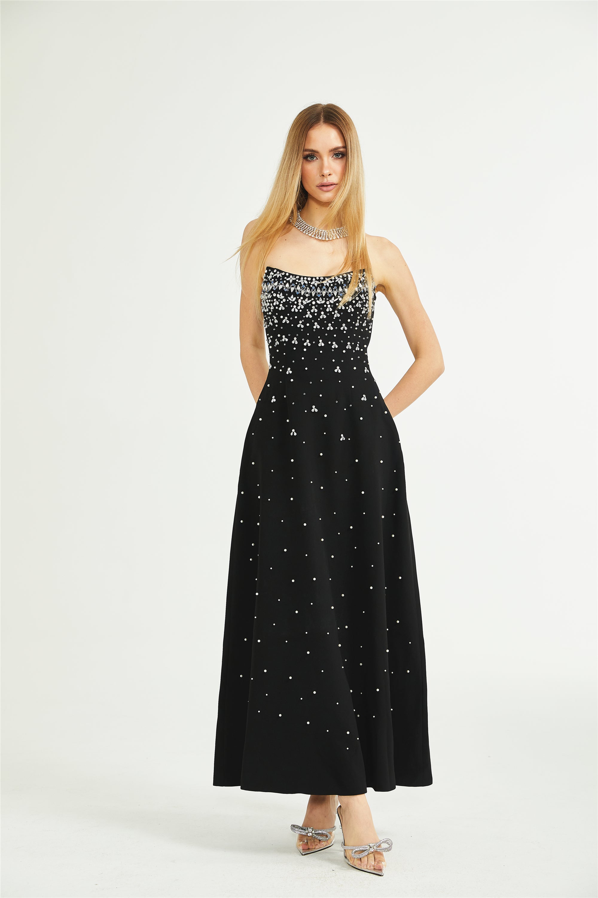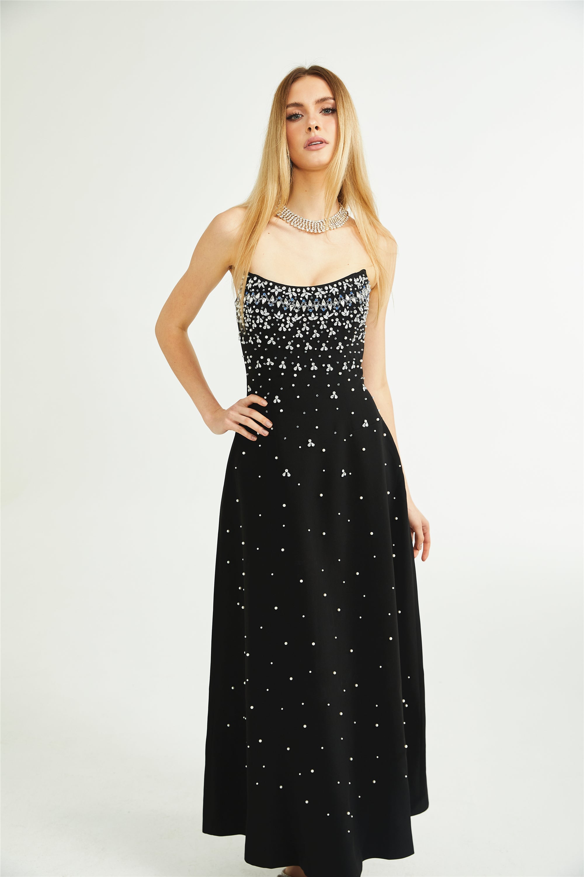 • إشعار هام: بطلبكِ فستان ميليساند، فإنكِ تلتزمين بأن جميع اللآلئ والكريستالات مصنوعة يدويًا. تساقط أو انكسار عدد قليل جدًا من اللآلئ والكريستالات أمر طبيعي، حتى العلامات التجارية الفاخرة والراقية تواجه هذه المشكلة.