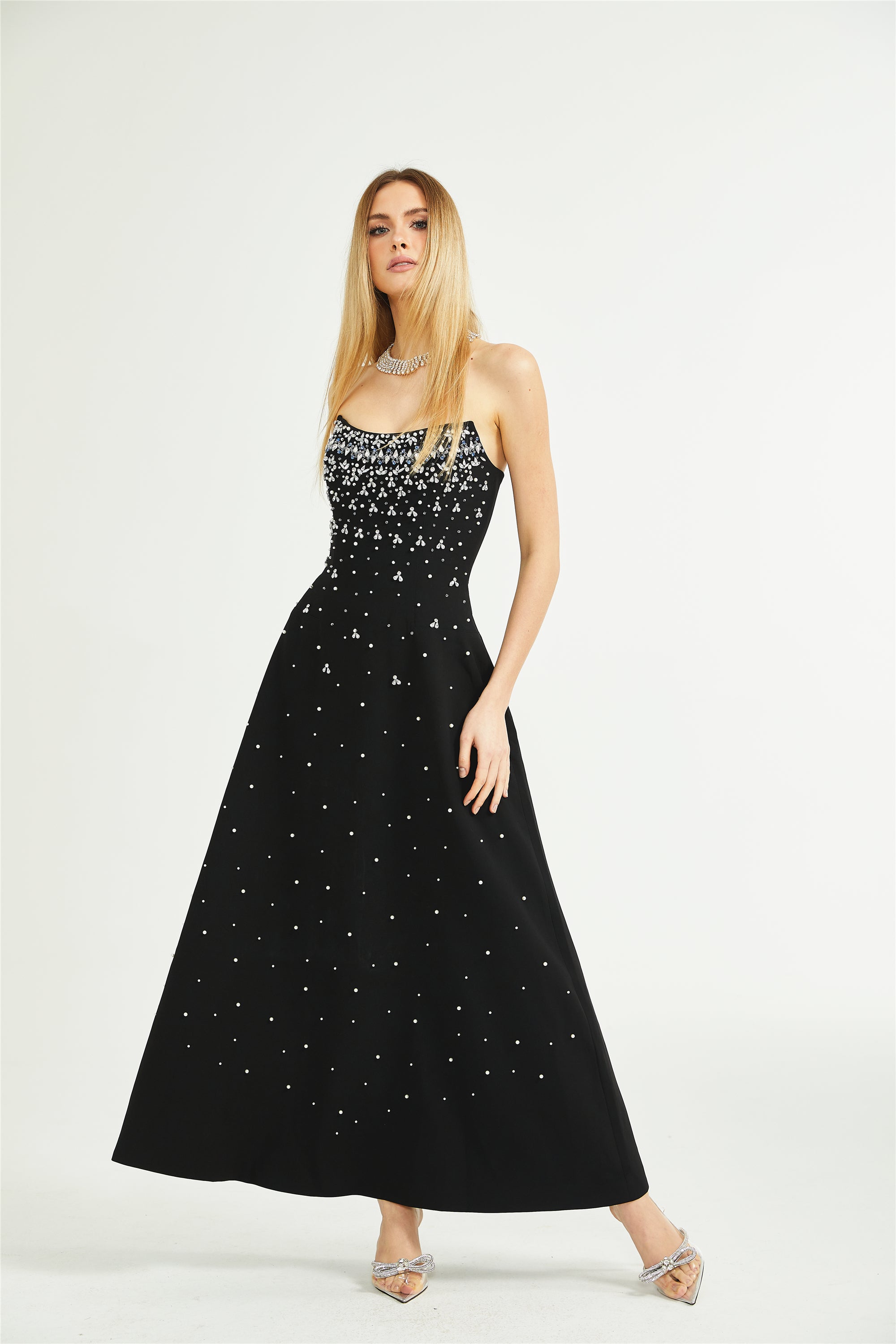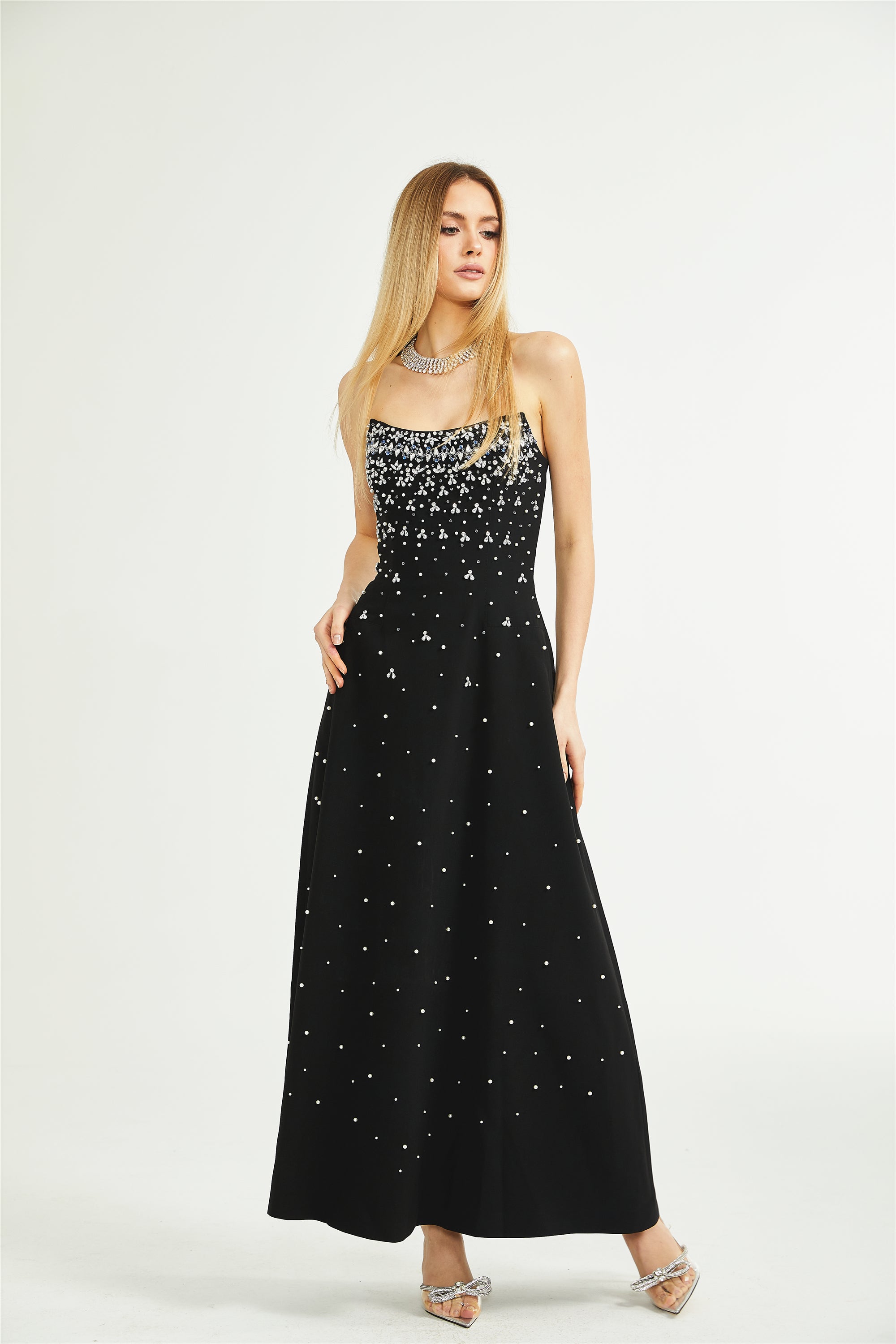 فستان ماكسي مزين باللون الأسود من ميليساندي
