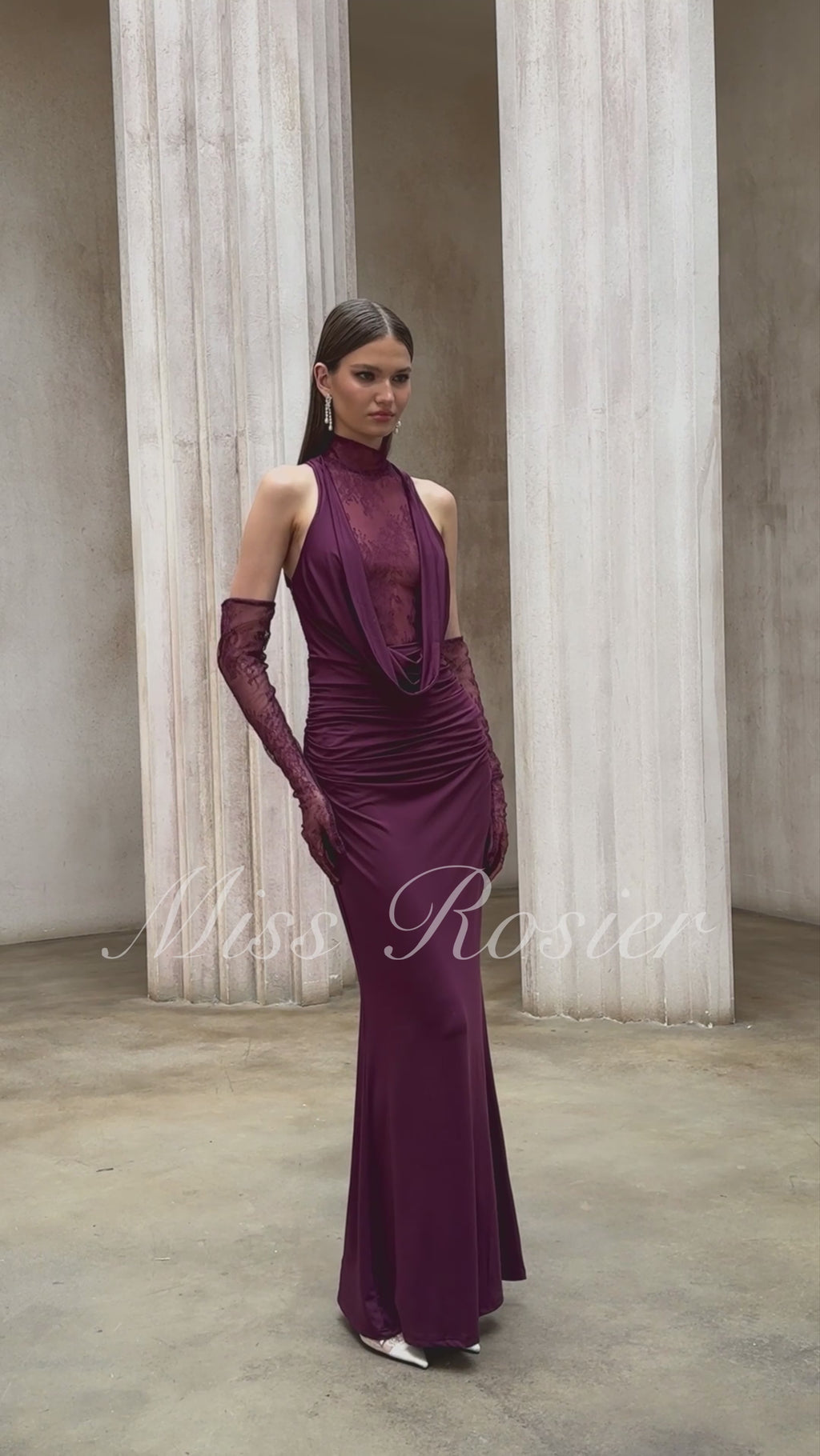 فستان طويل مزين بالدانتيل من Borbála باللون الأرجواني