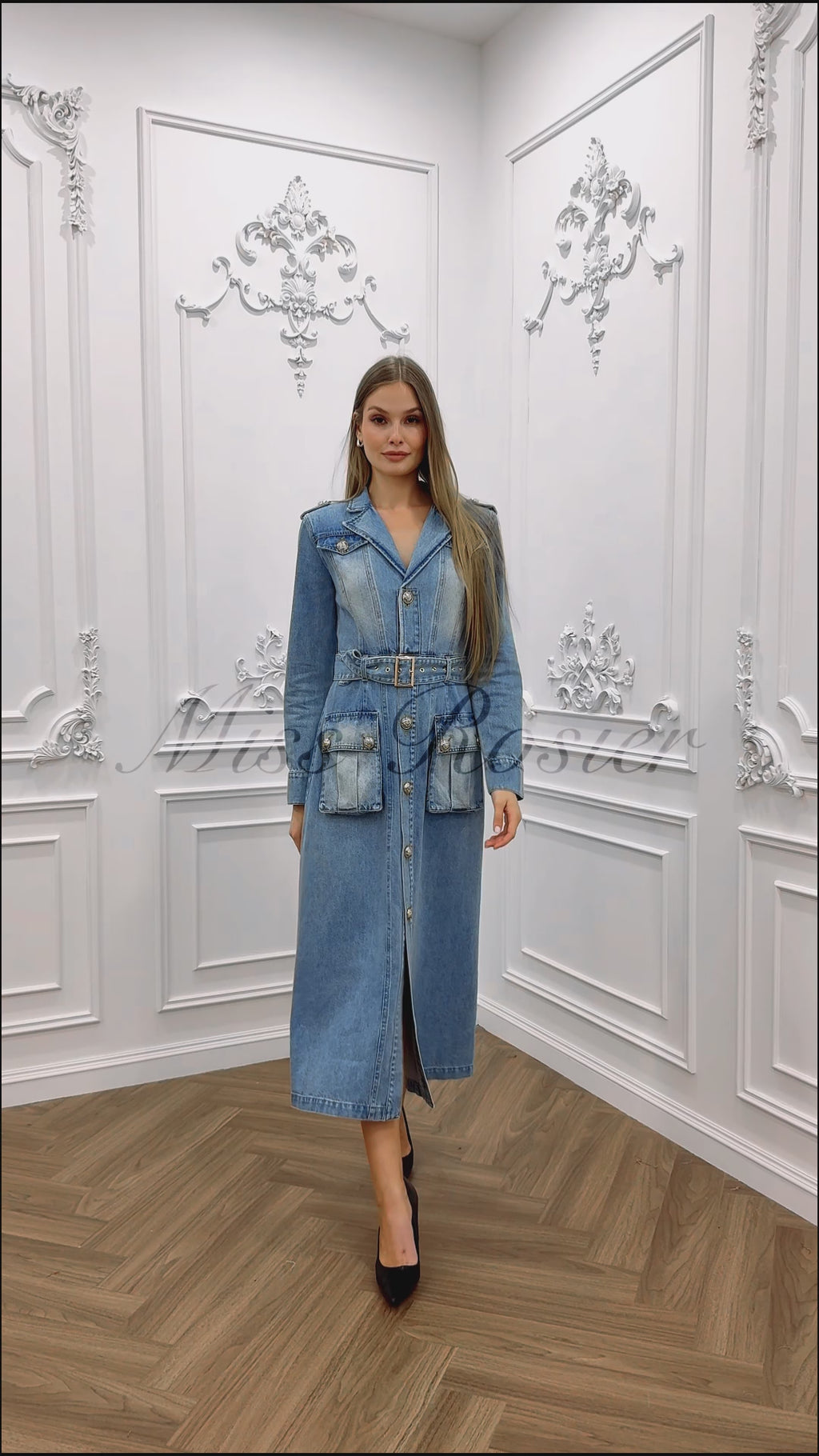 فستان ماكسي من الدنيم المصبوغ باللون الأزرق من تايرا