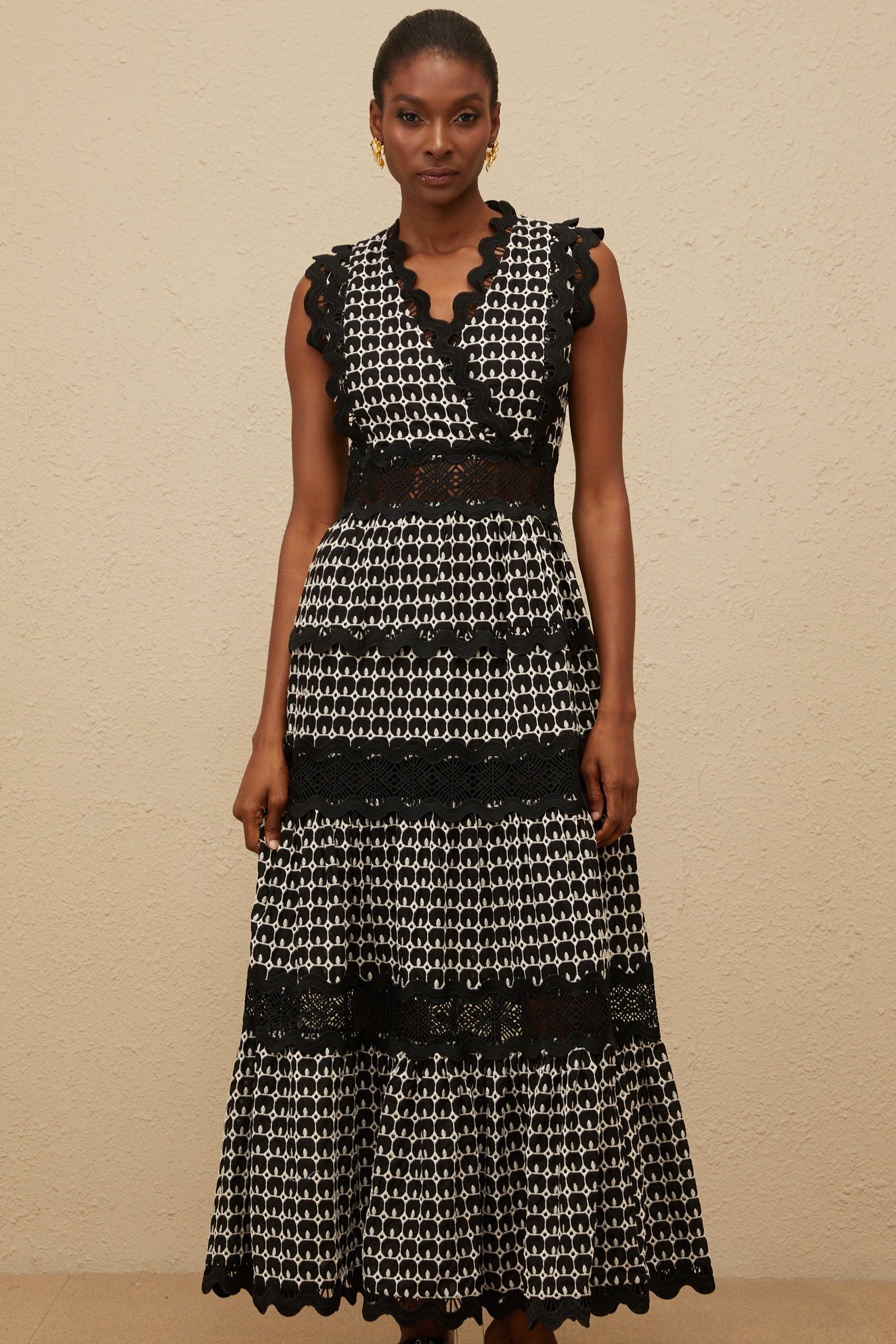 Chiara Black Lace Panel Pleated Midi Dress