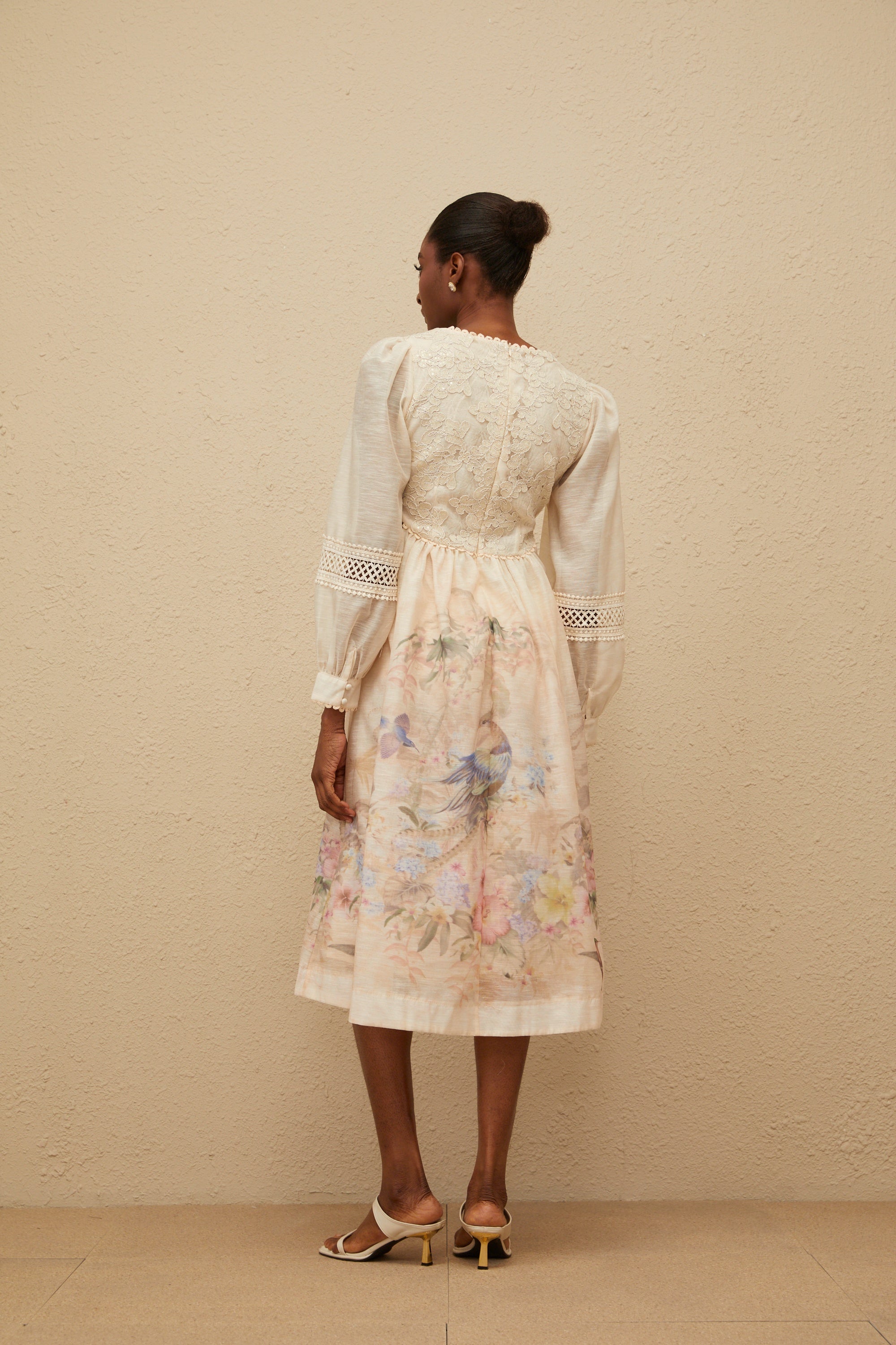 Amber White Long Sleeve Floral Lace Midi Dress