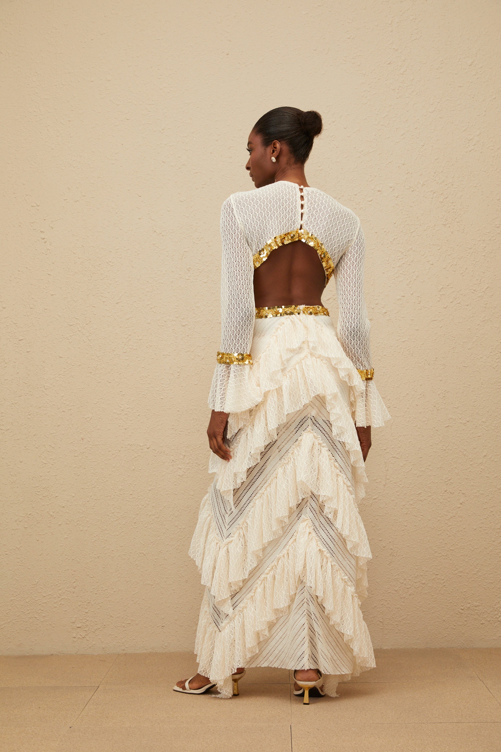 Airelle White Satin Panel Lace Maxi Dress Airelle White Satin Panel Lace Maxi Dress