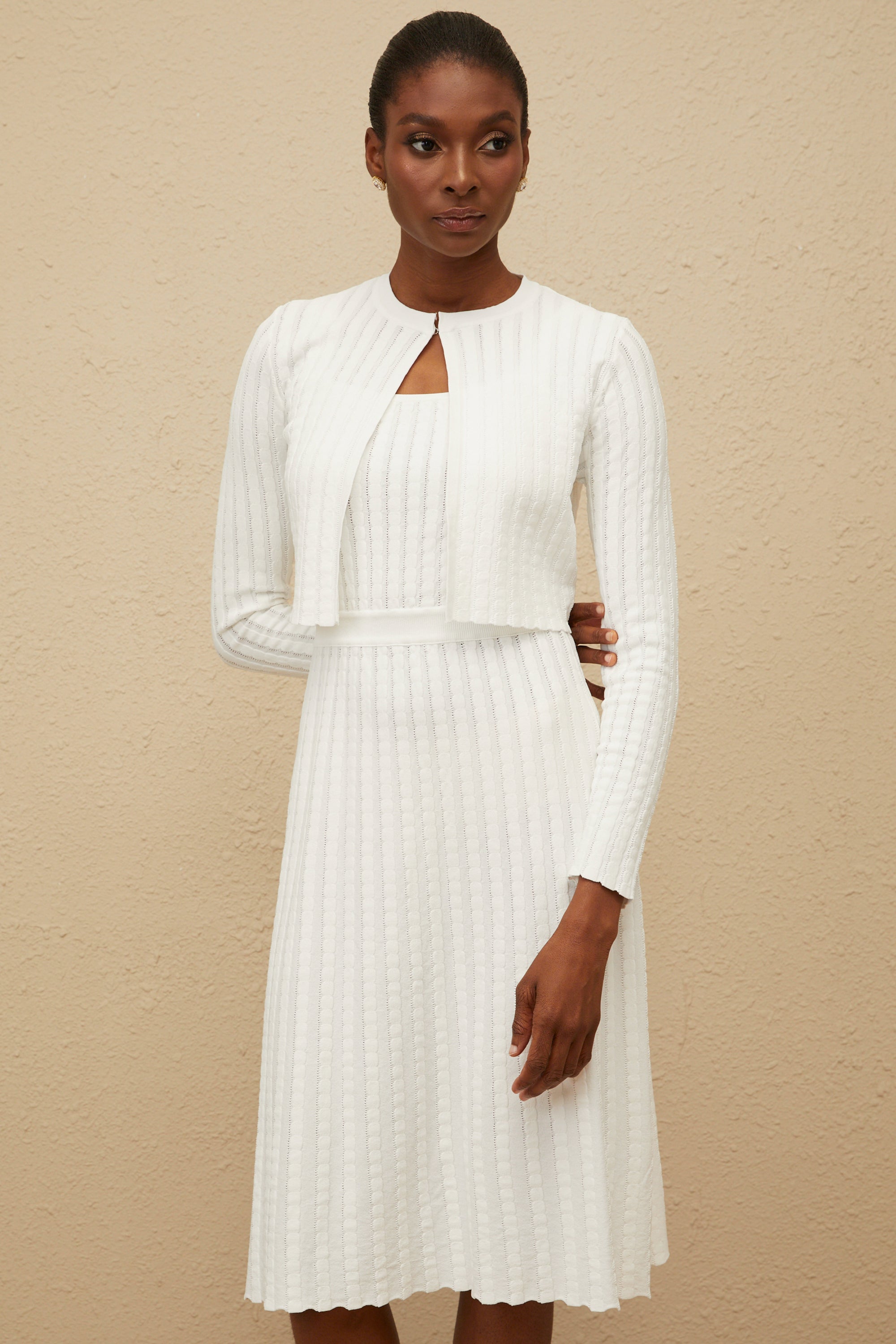 Solara White Draped Midi Dress