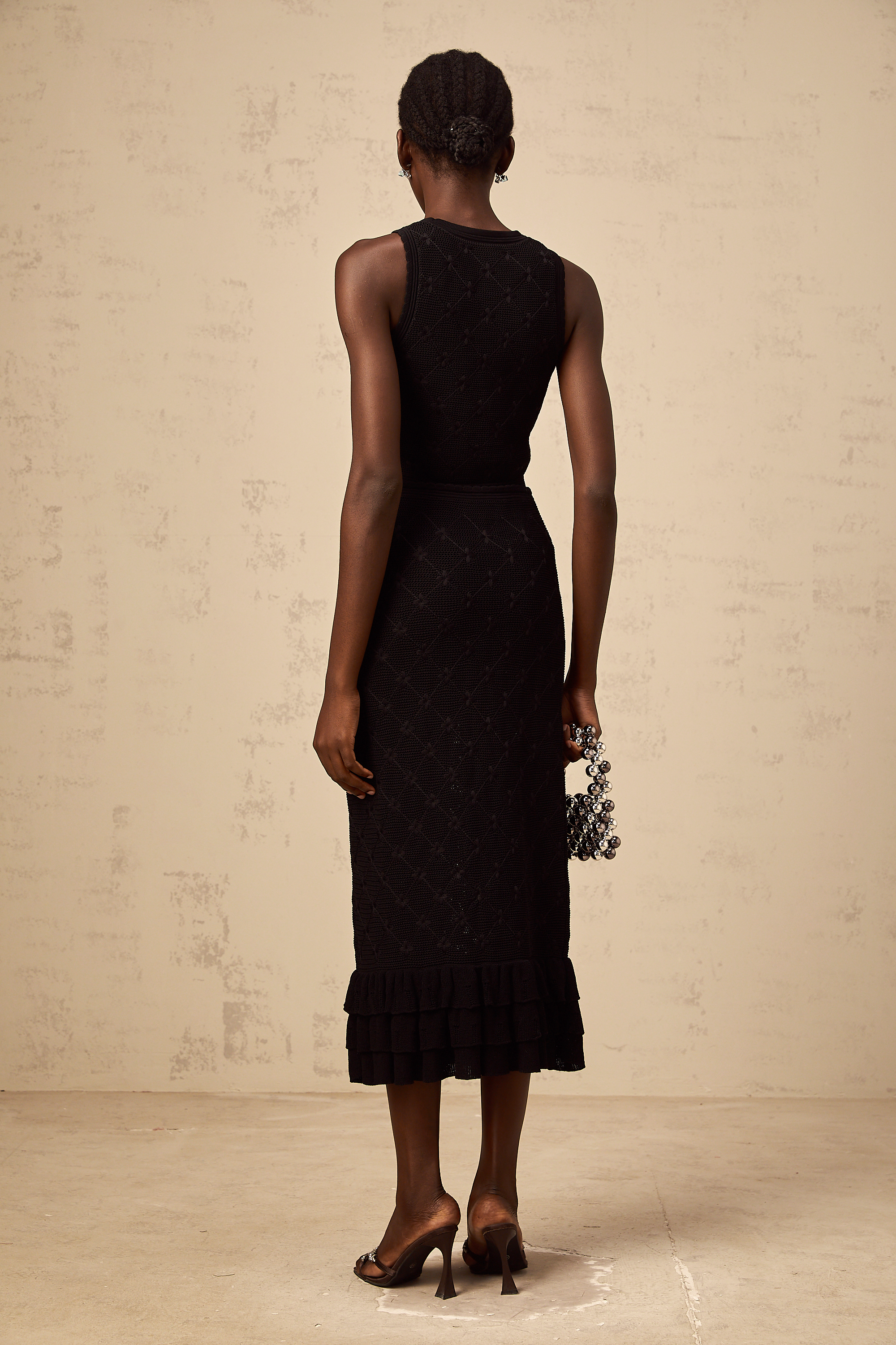 Denisa Schwarzes Midikleid mit Spitzeneinsatz