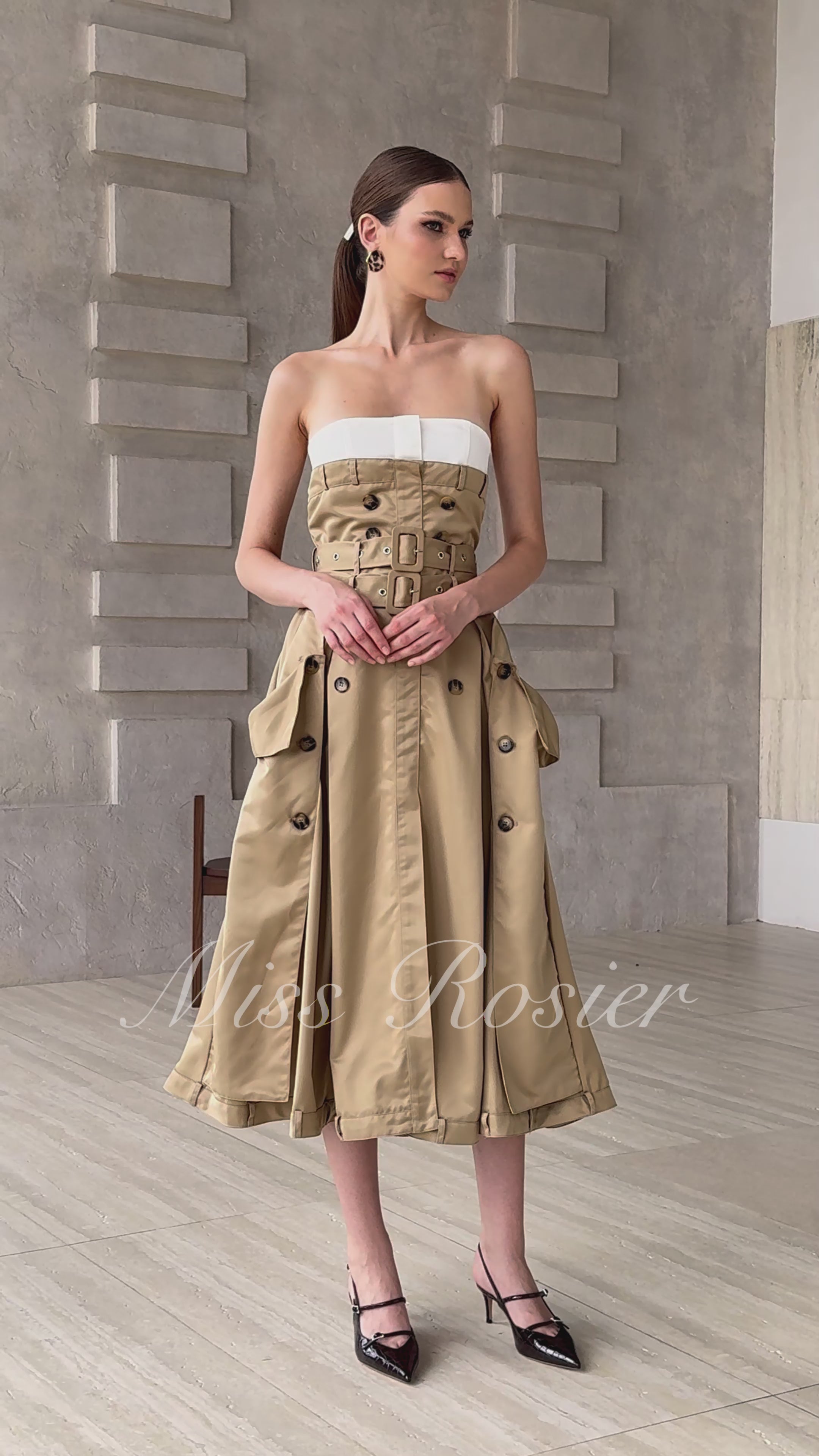 Alba – Khakifarbenes Midikleid im Trenchcoat-Stil