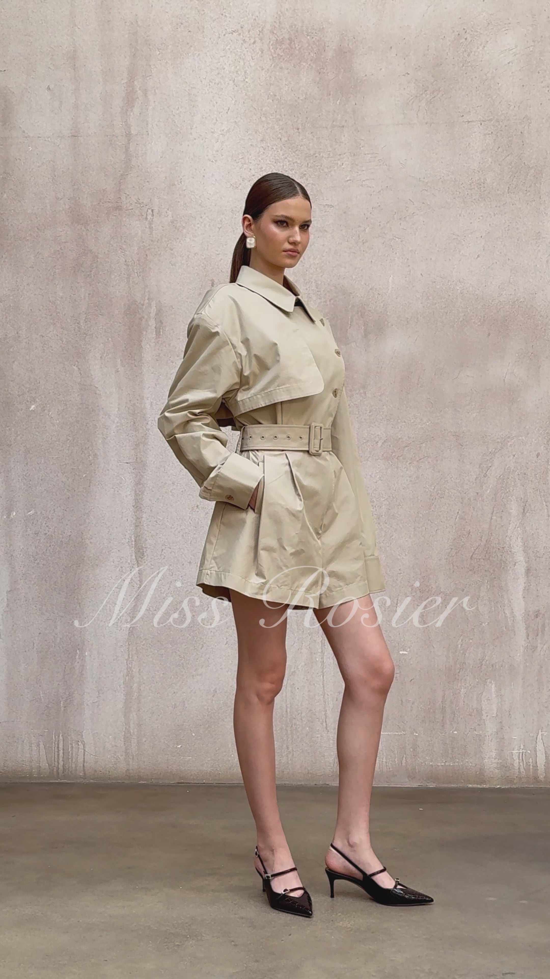 Priscille Khaki-farbener, asymmetrischer Trench-Overall