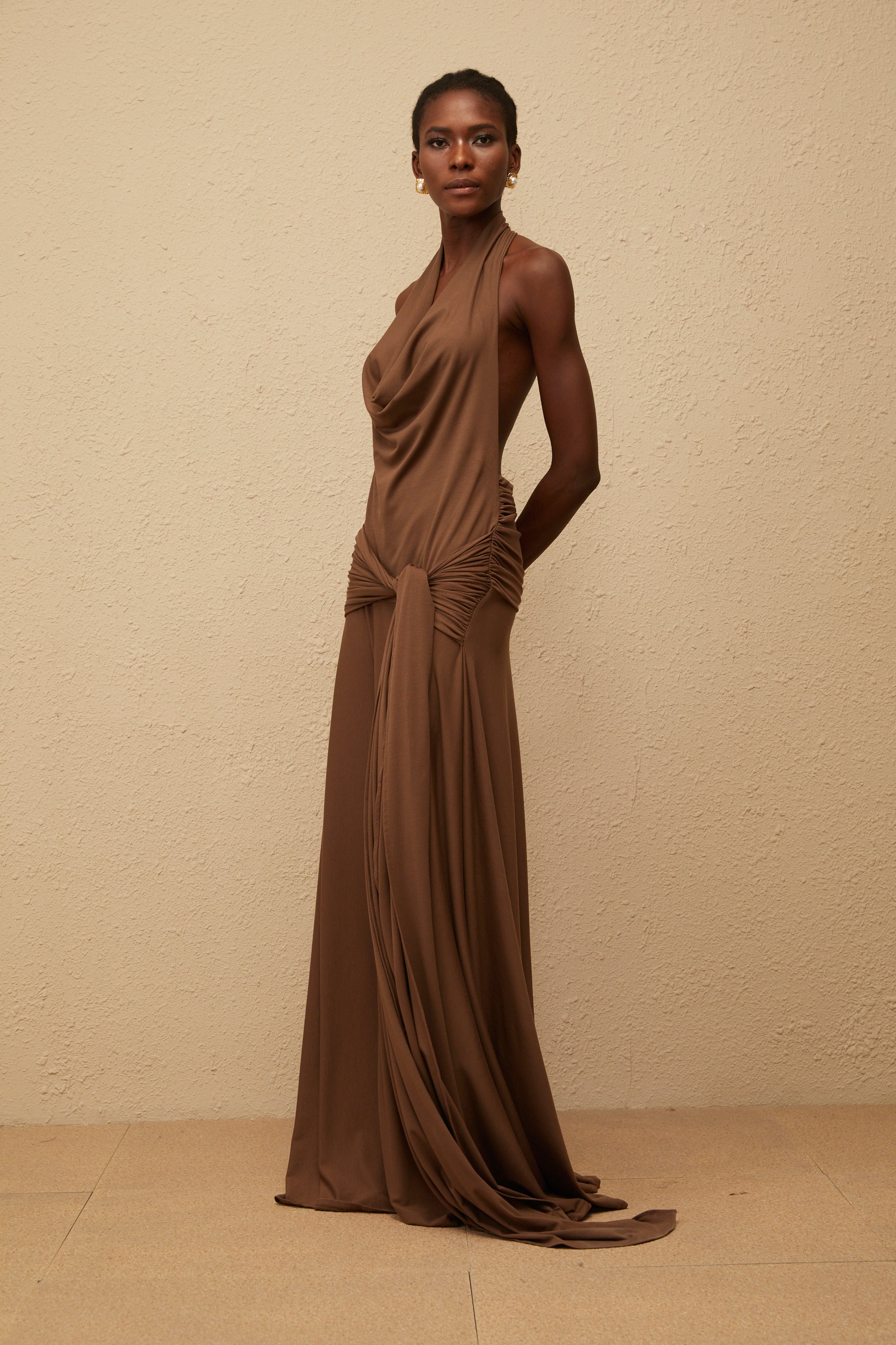 Minna Brown Neckholder-Maxikleid mit gedrehtem Design