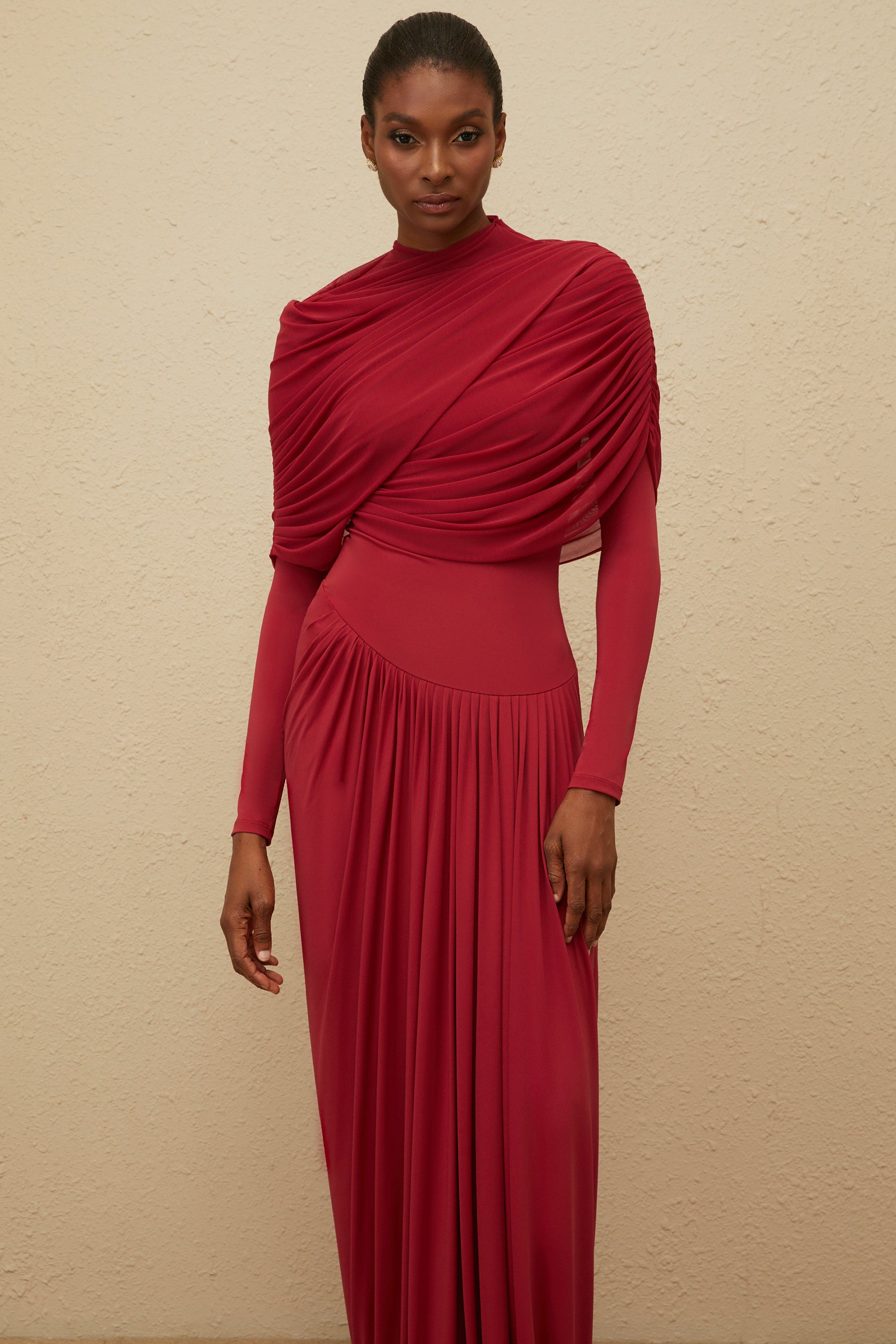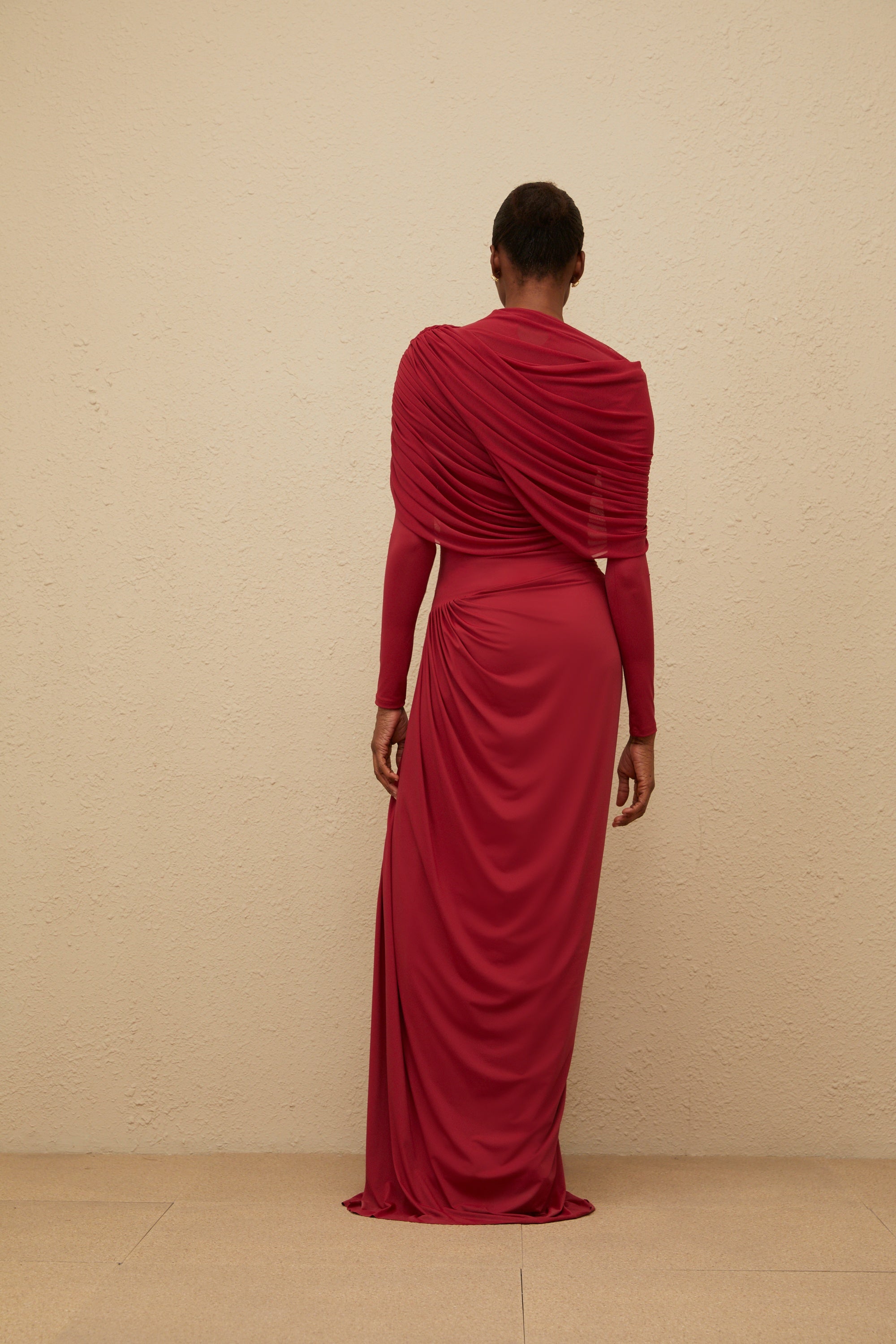 Fíona Red Asymmetrcial Draped Maxi Gown Fíona Red Asymmetrcial Draped Maxi Gown
