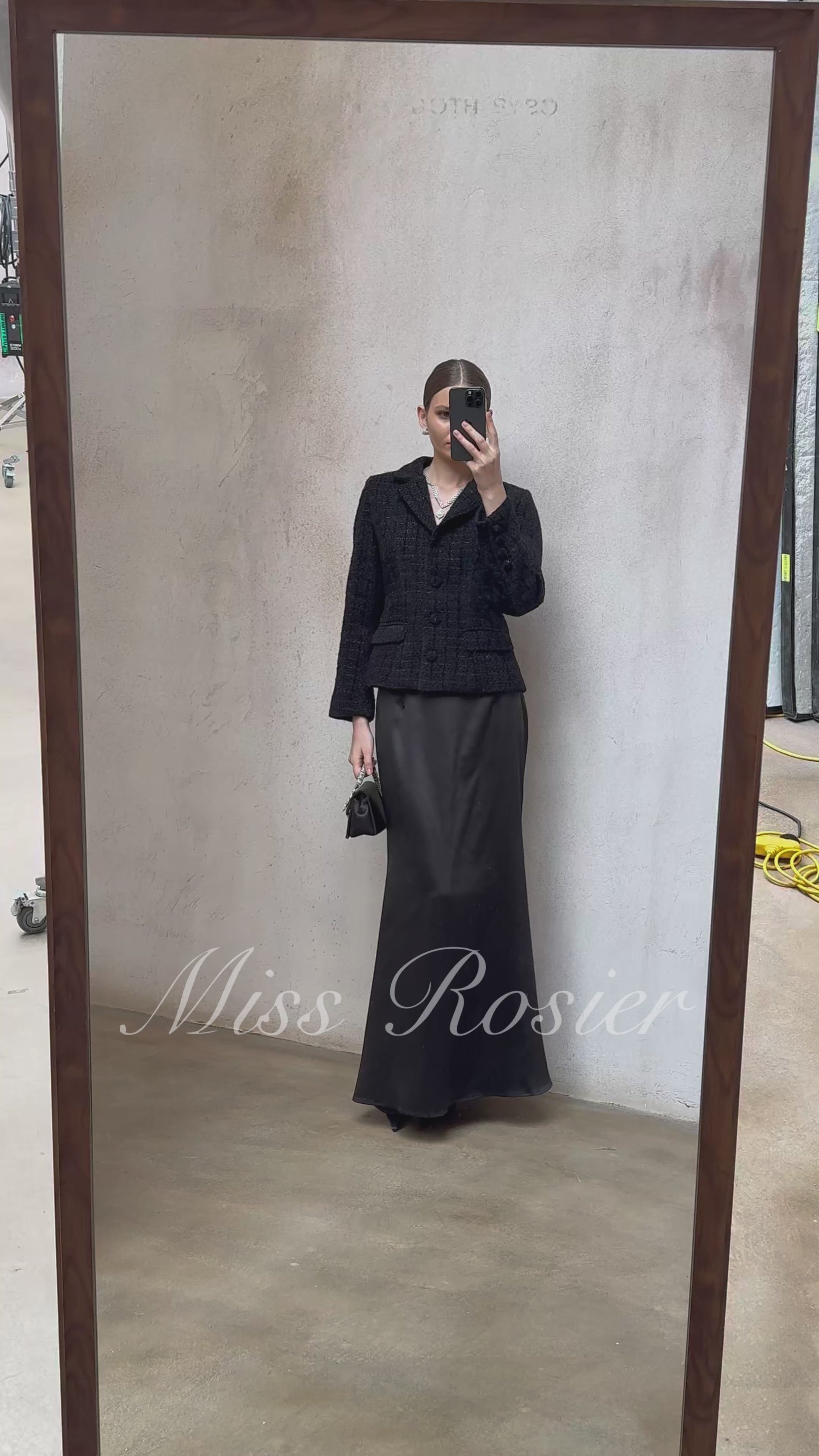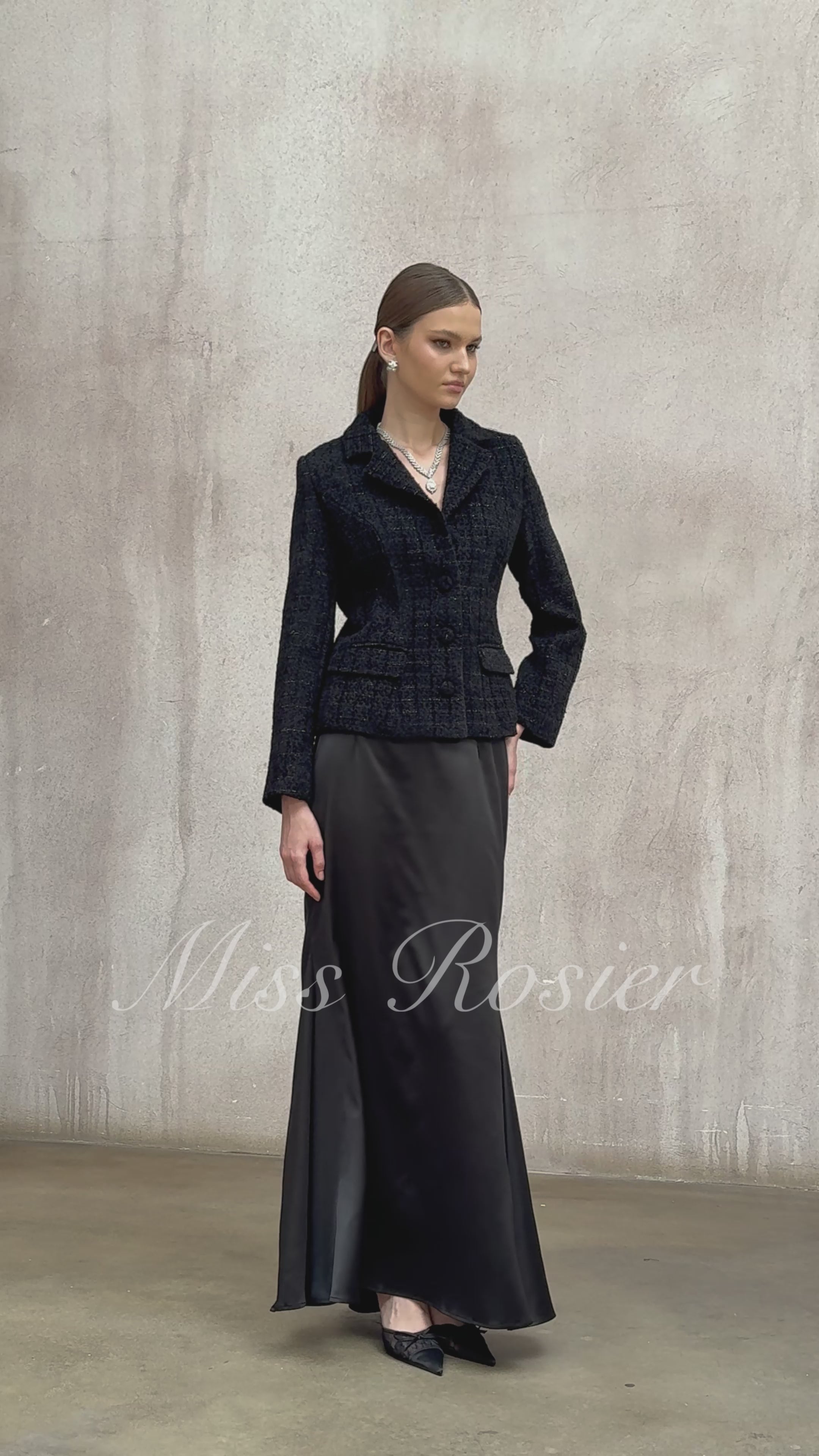 Ariadna Black Tweed Jacket & Satin Skirt Set