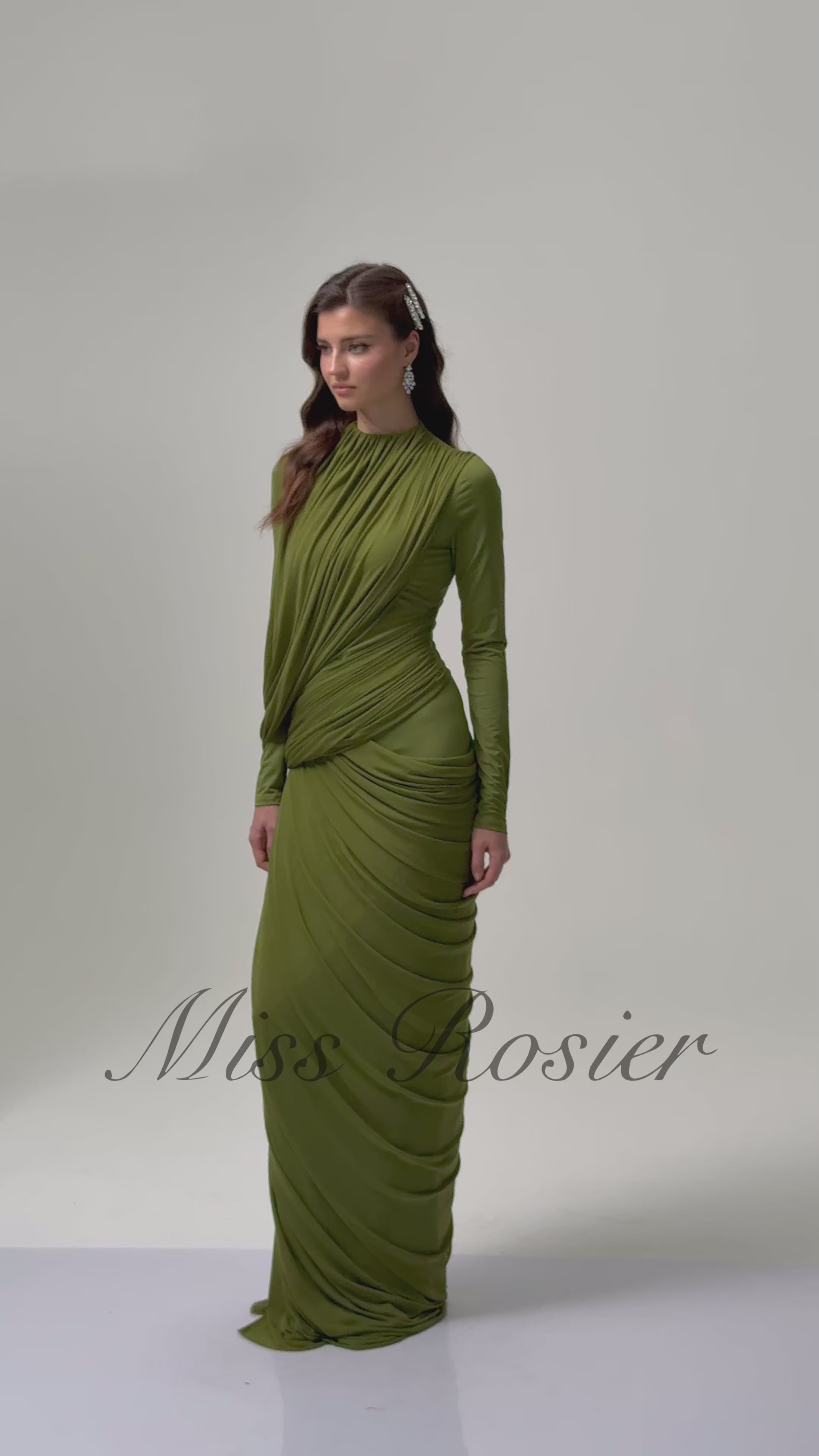 Arlette Green Asymmetrical Ruched Maxi Dress