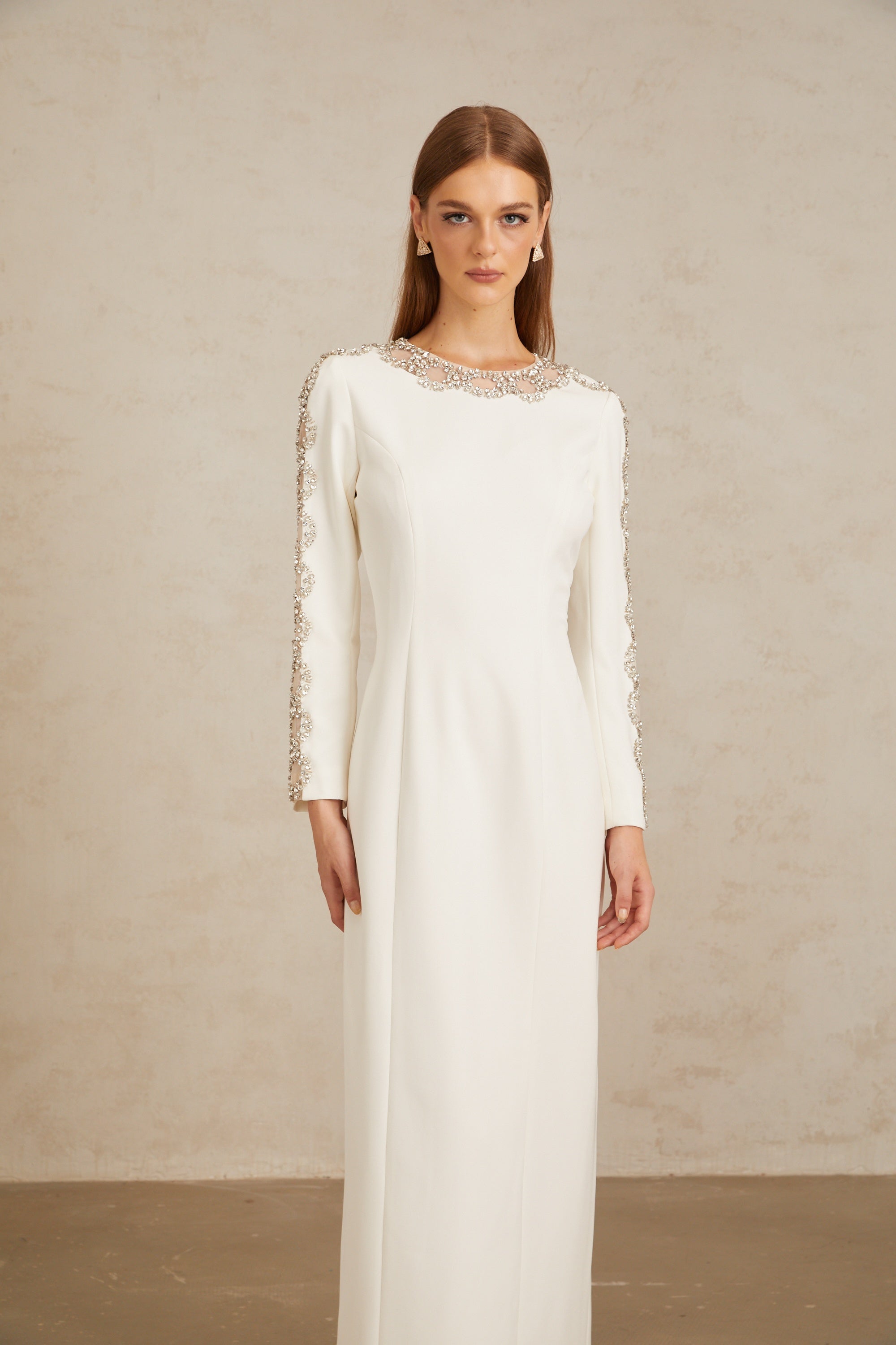 Freja White Crystal Embellished Maxi Gown