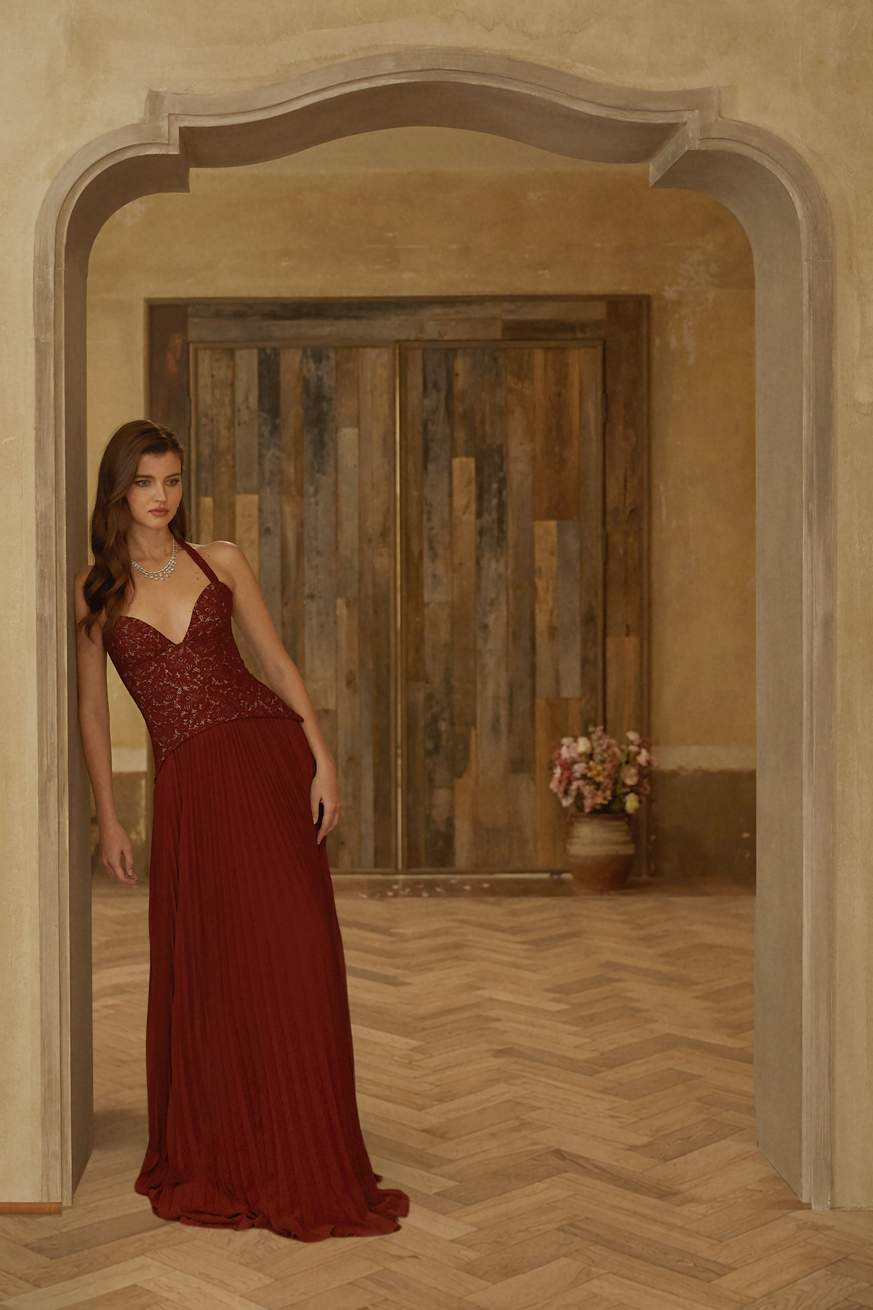 Magali Pink Sleeveless Maxi Dress with Faux Flower & Bow-Tie Embellishment