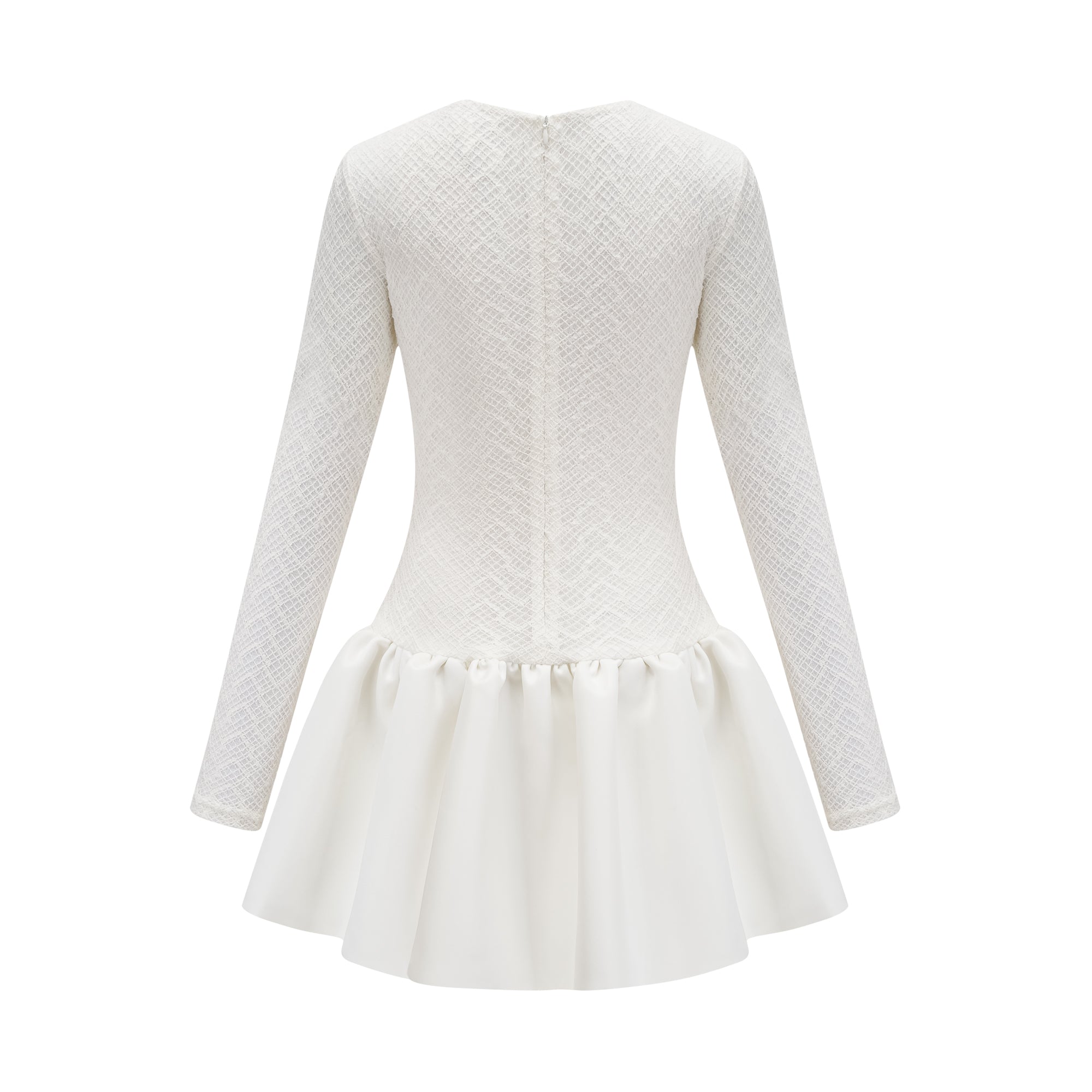 Piroska White Sleeveless Pearl Trim Mini Dress