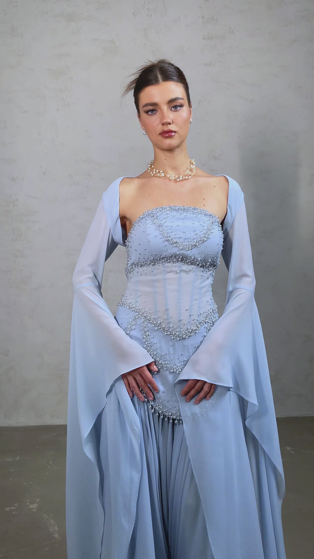 Gaëlle Faux-pearl-embellished Pleated Maxi Dress in Light-blue