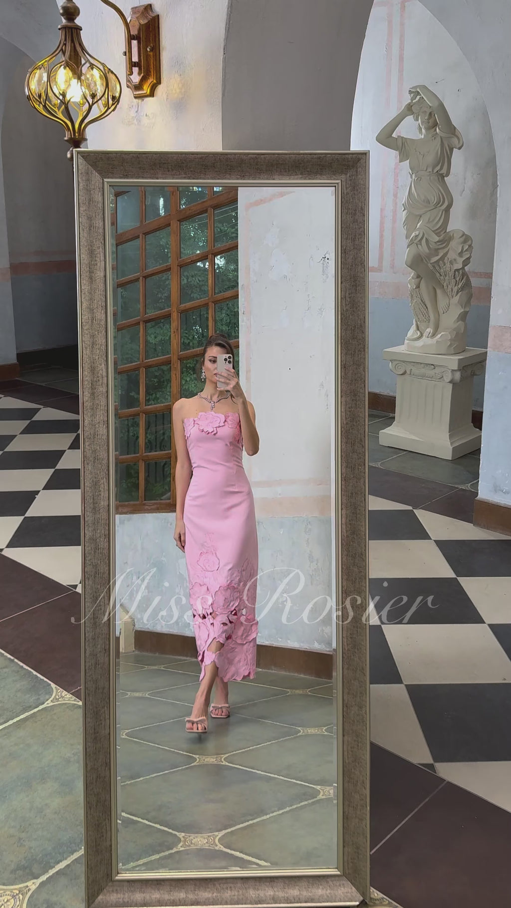 Inga Pink Strapless Floral Embroidered Maxi Dress