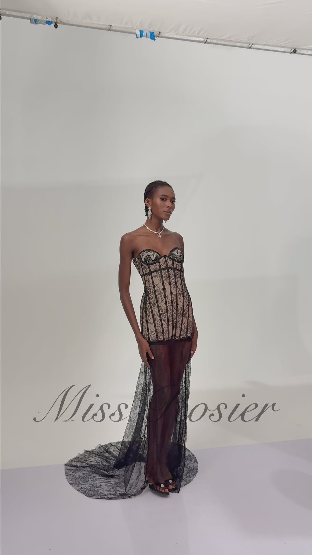 Astrid Black Floral Lace Corset Maxi Dress