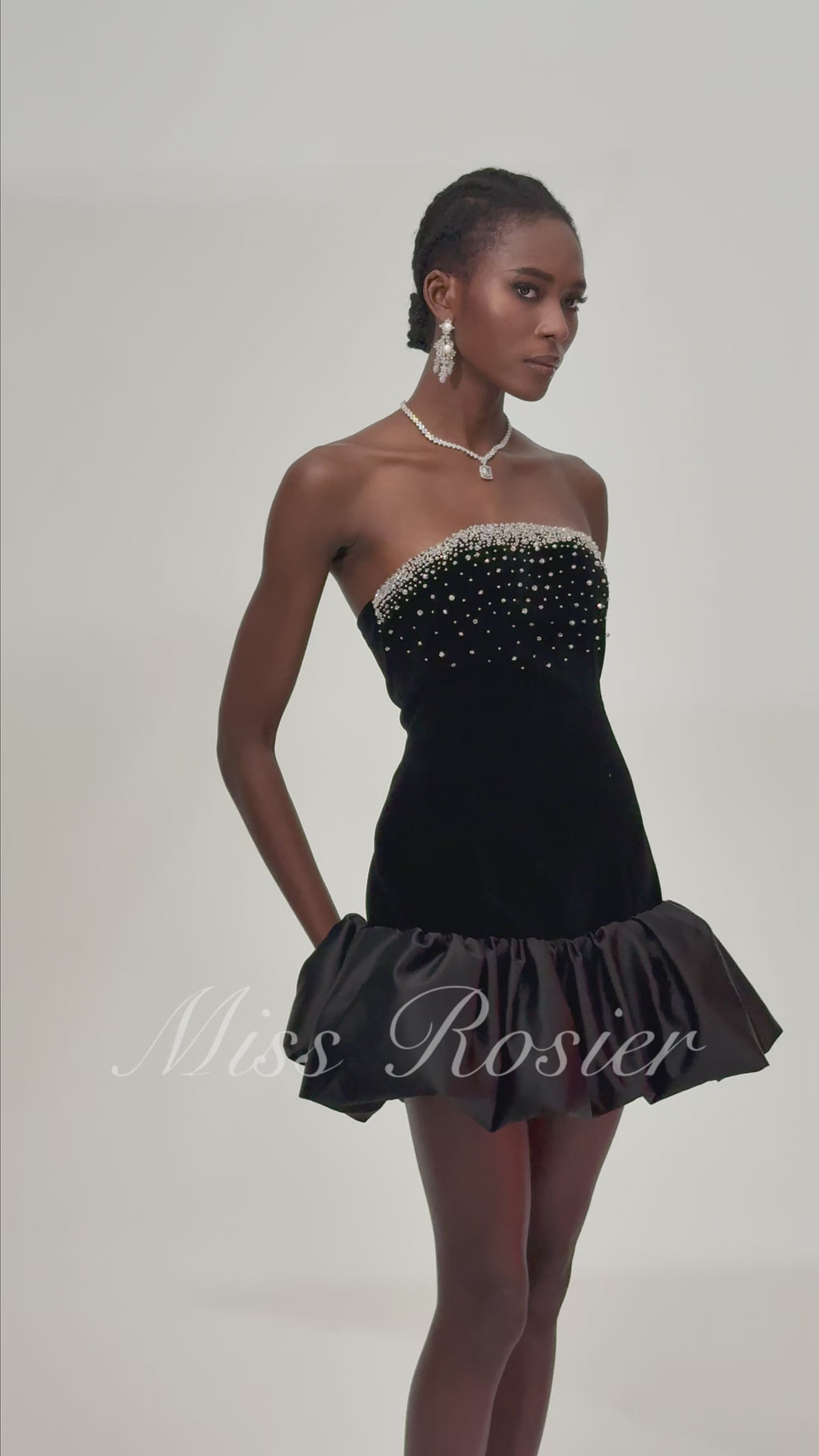 Lucía Black Beaded Embellished Velvet Mini Dress