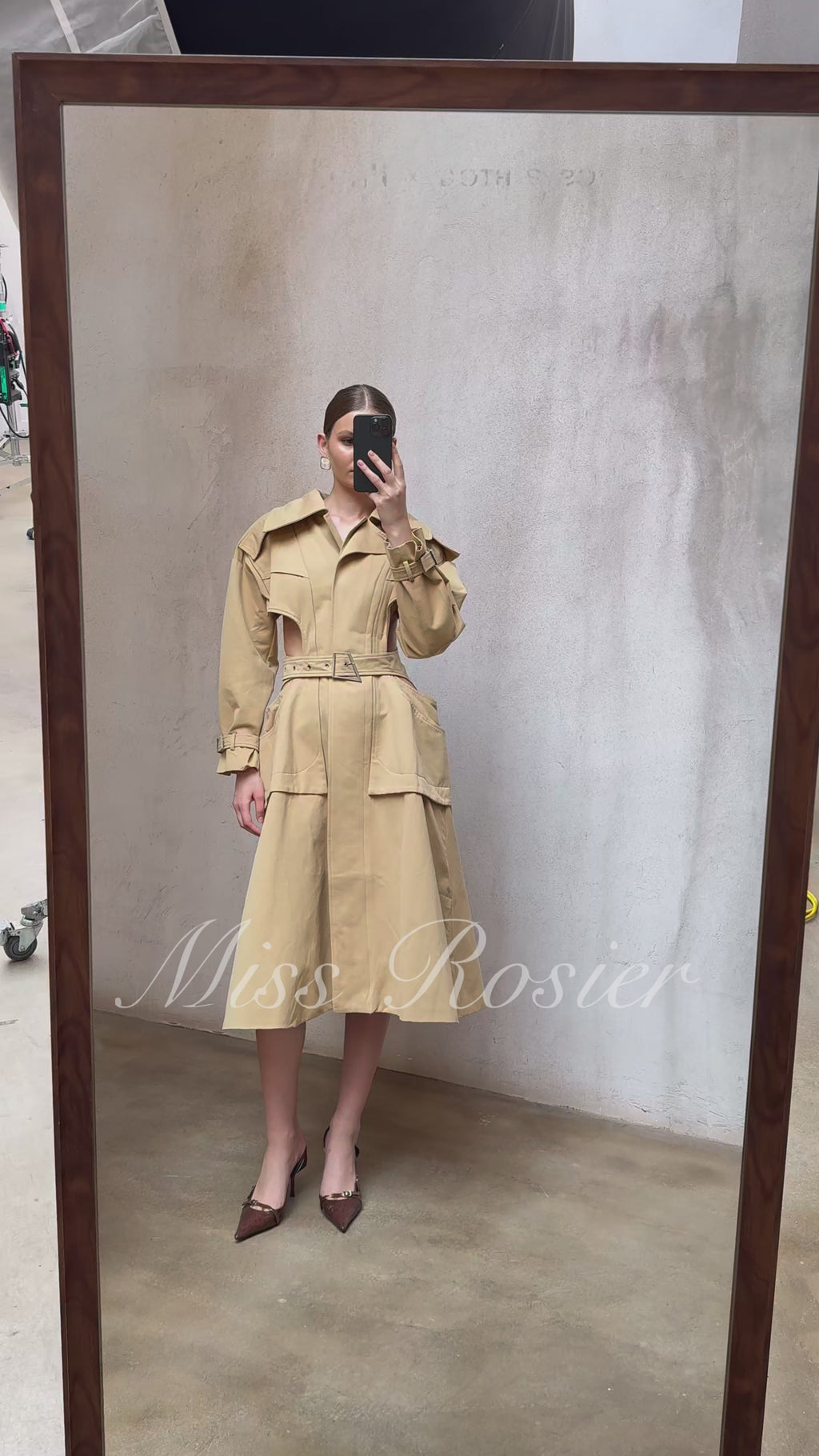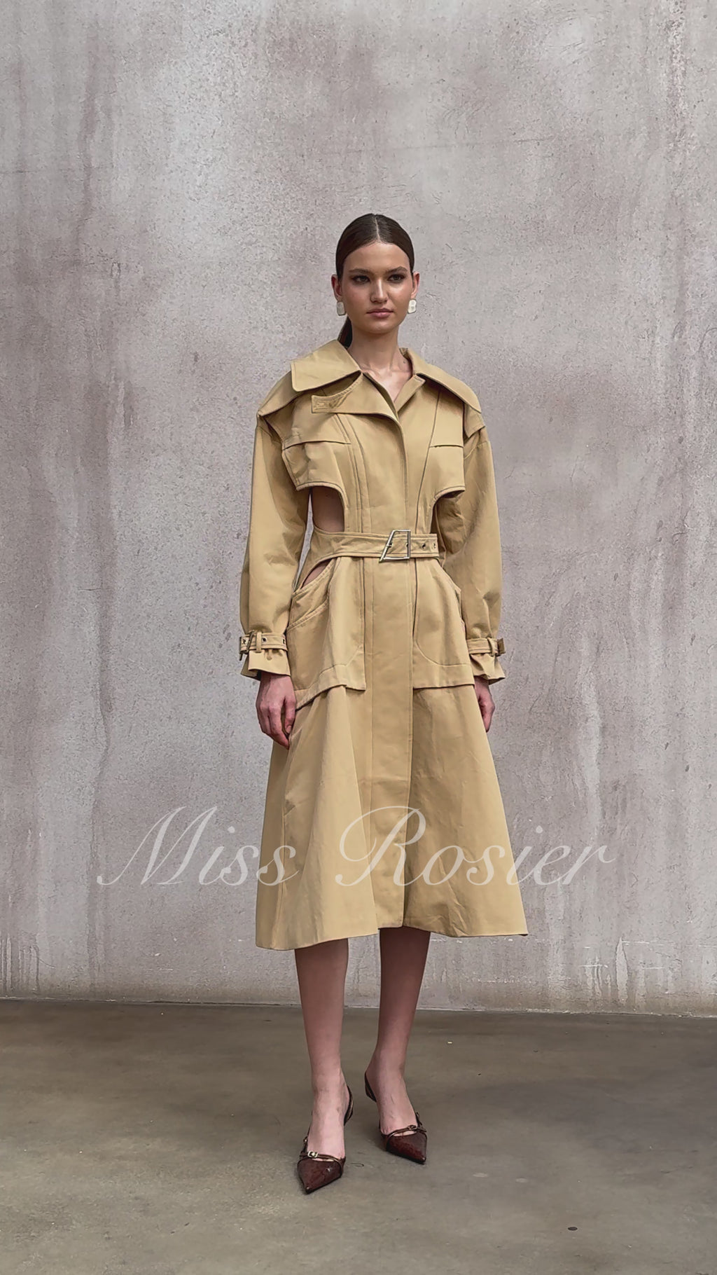 Pilar Neutral Cut Out Belted Long Trench Coat