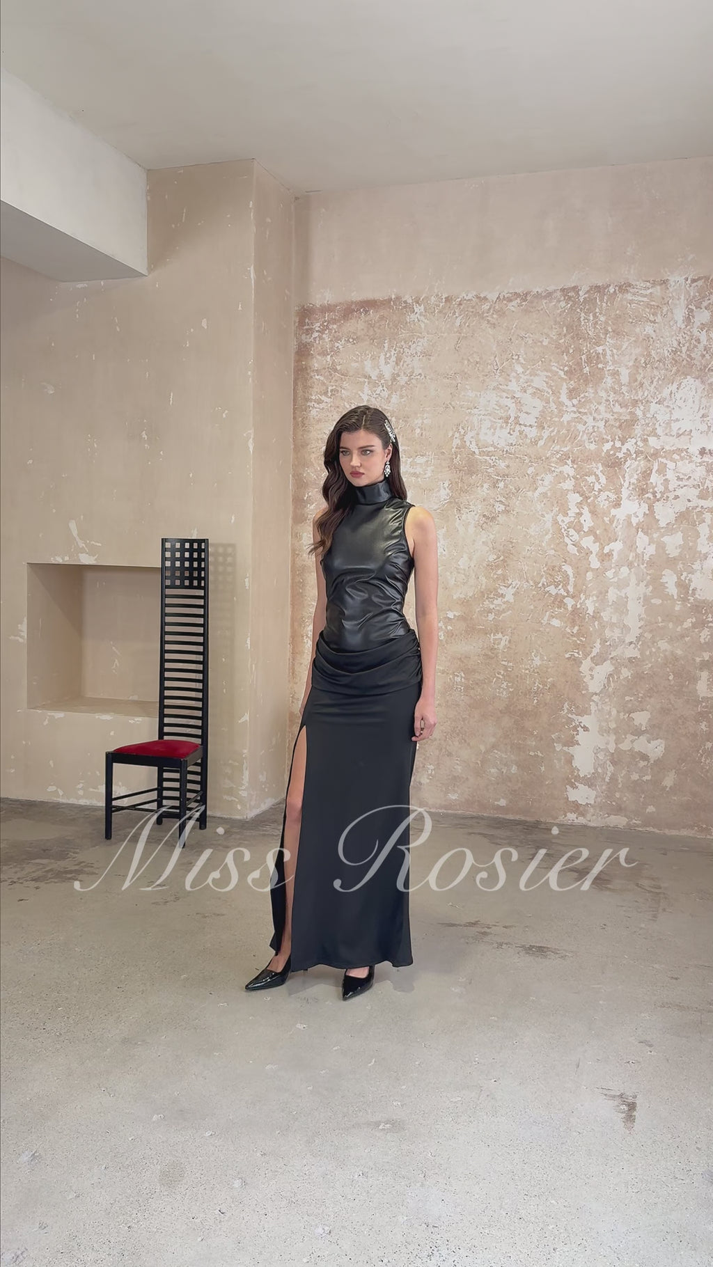Abimbola Black Faux Leather Maxi Dress