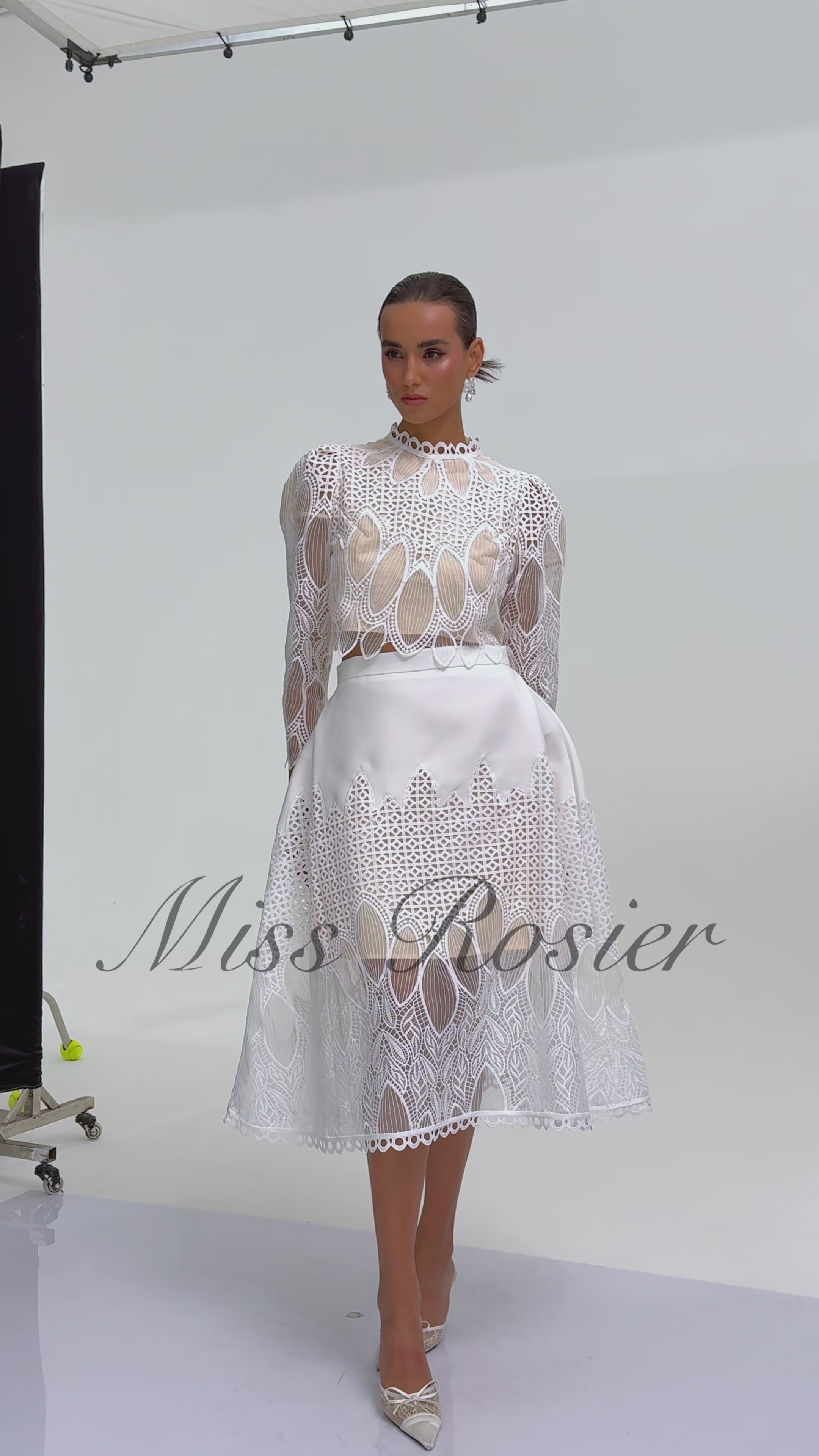 Anett White Corded Lace Blouse & Skirt Set (Final Sale)