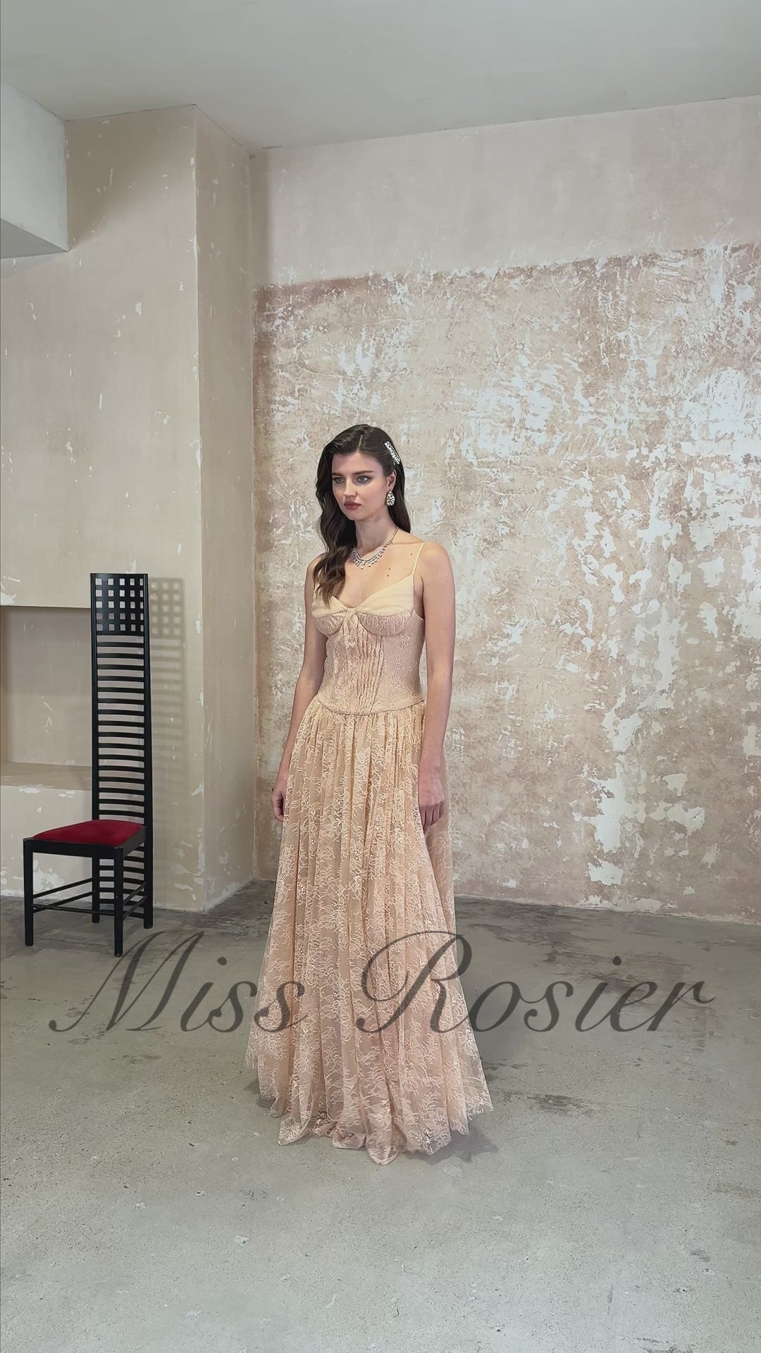 Giuseppina Neutral Pleated Lace Maxi Dress