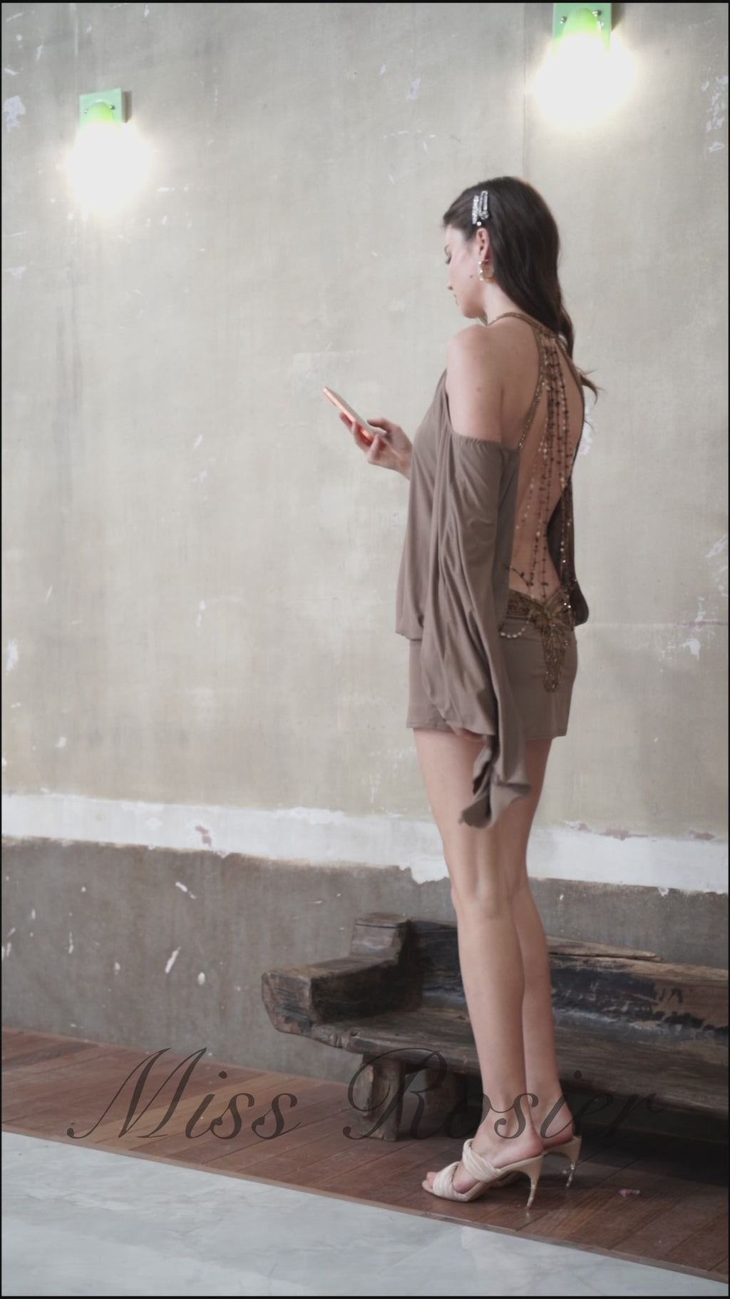 Jimena Brown Cold Shoulder Embellished Mini Dress