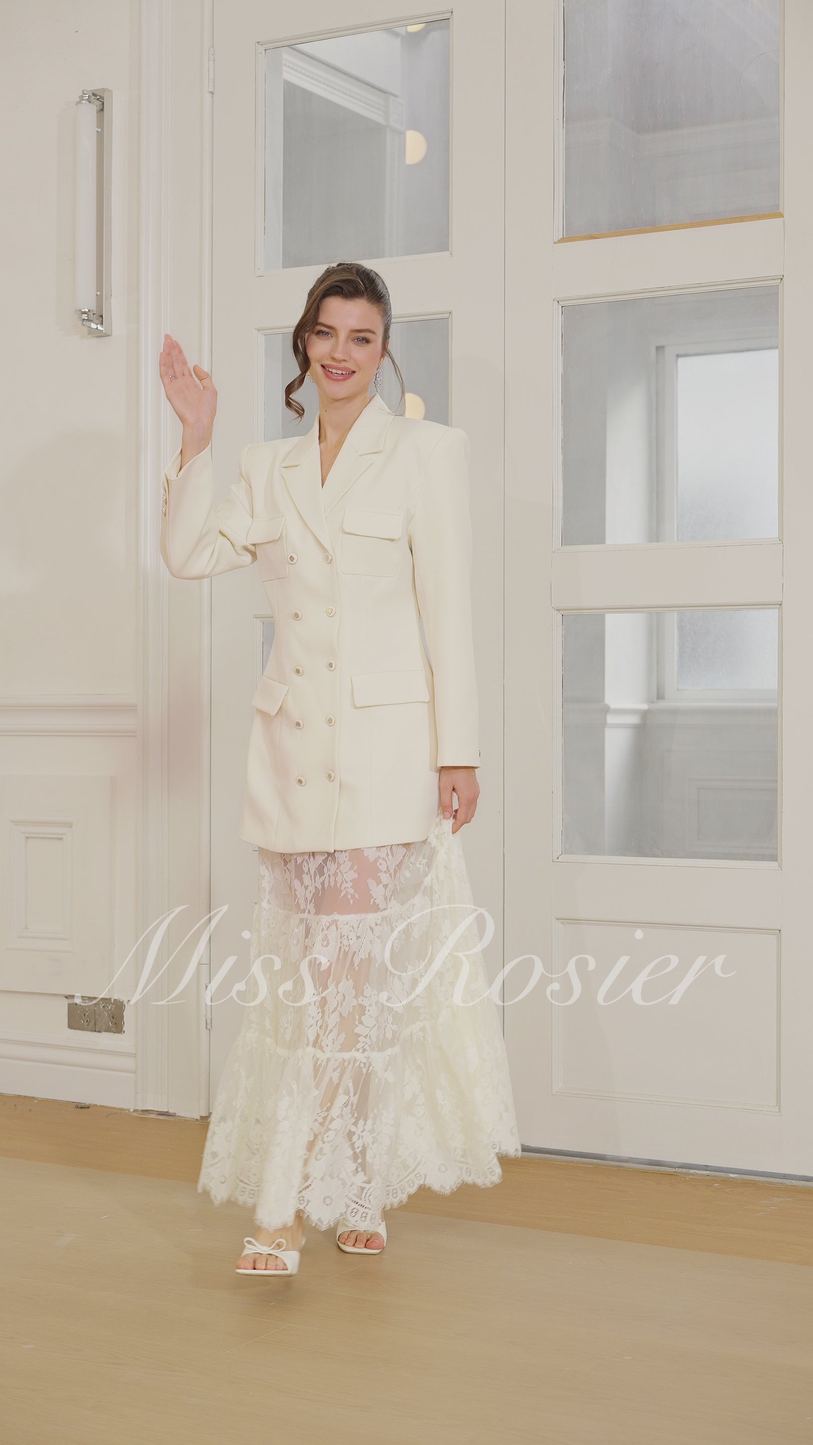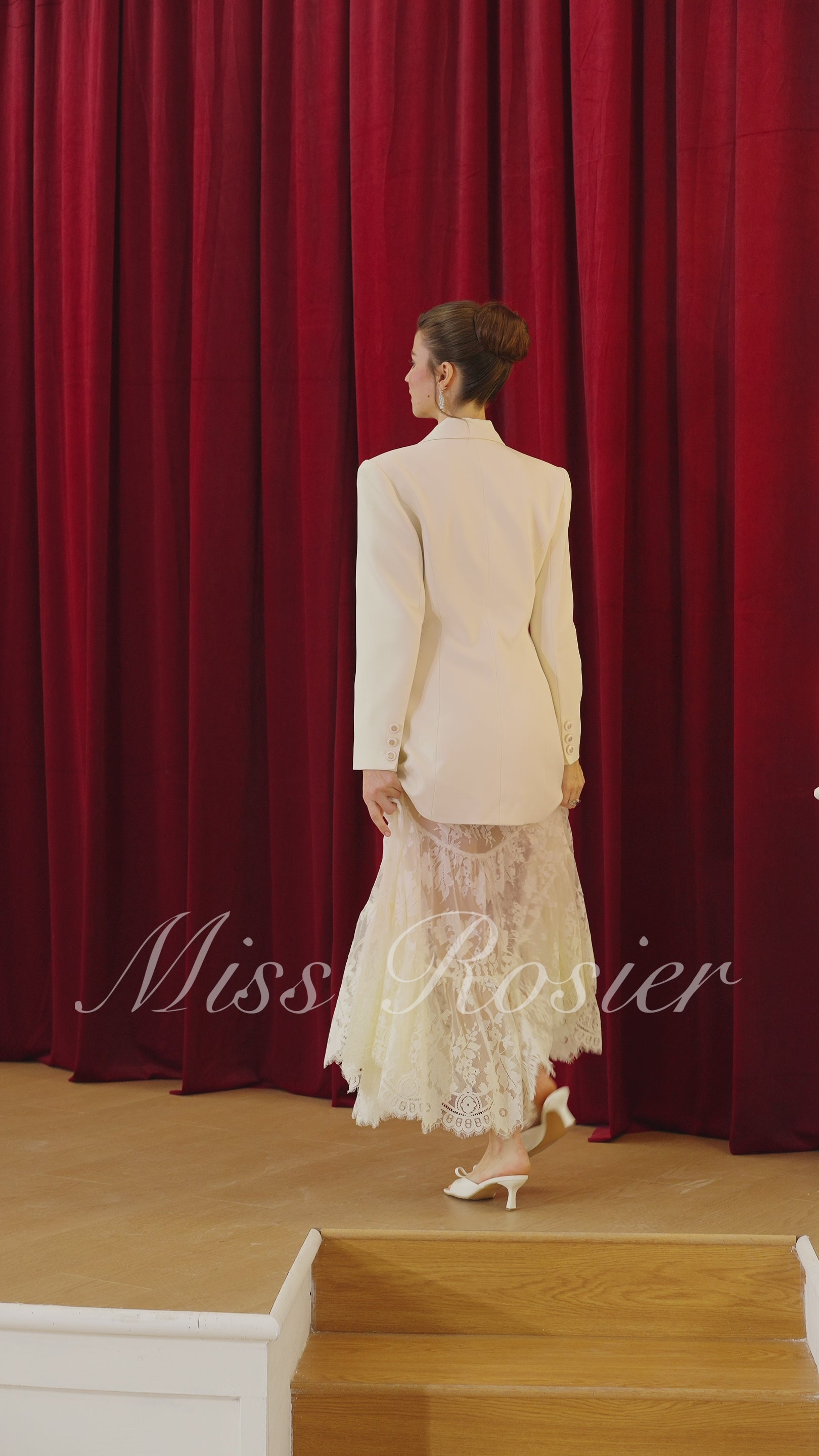 Liliana White Double-Breasted Blazer & Lace Skirt Set