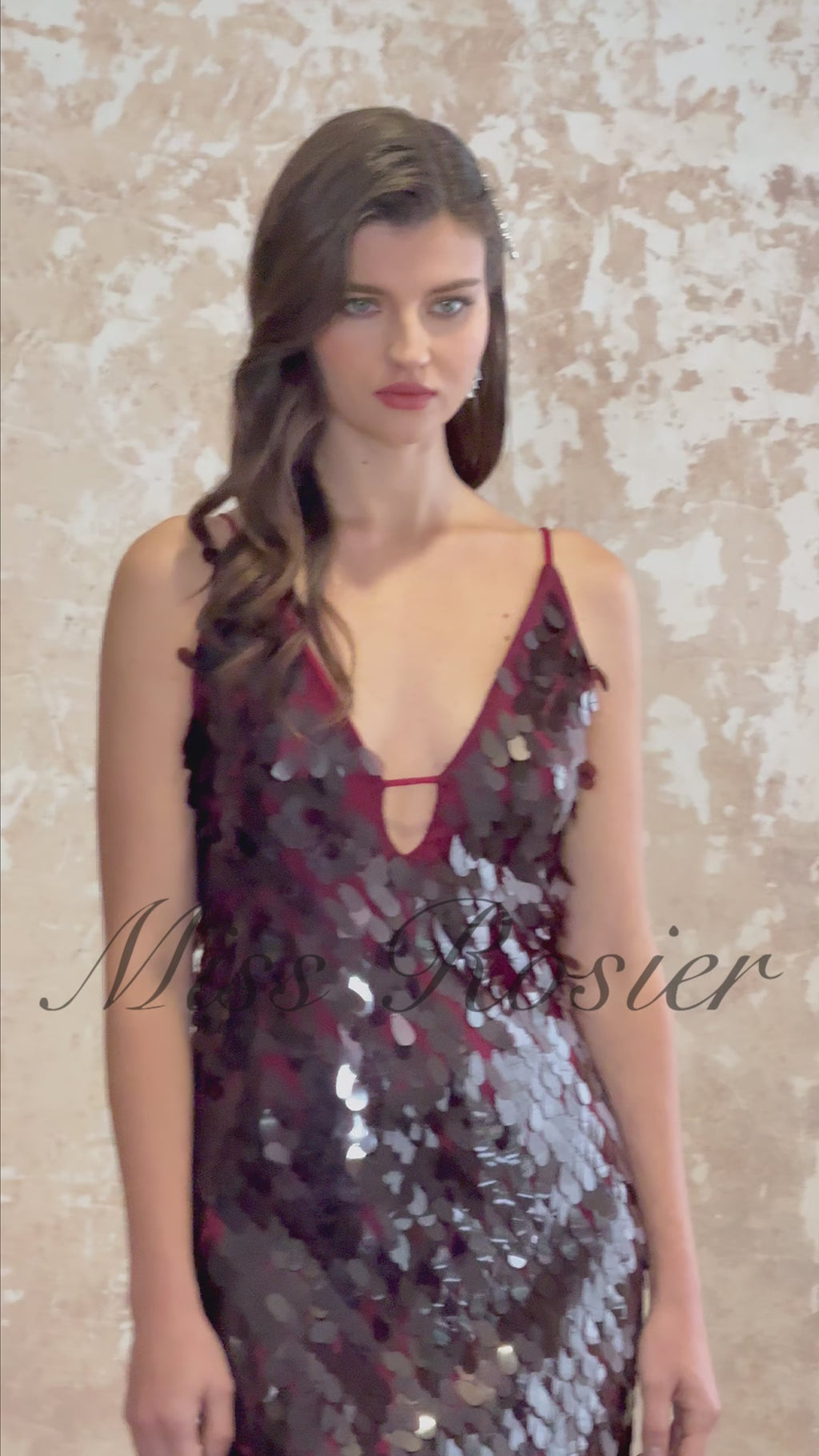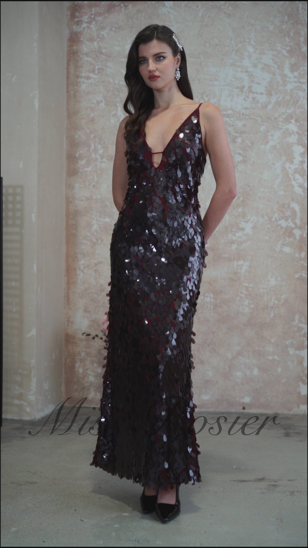 Lucyna Brown V-Neck Sequin Maxi Dress