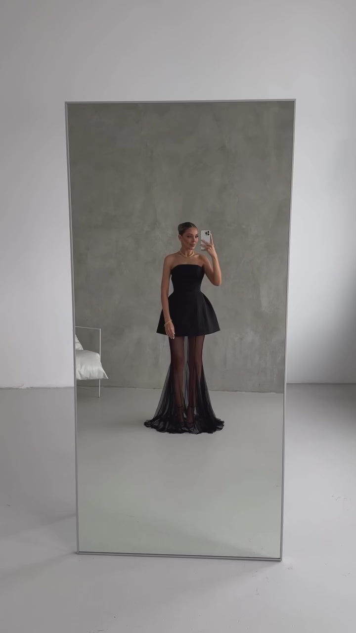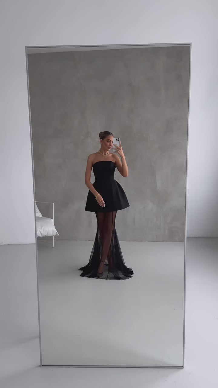 Mélanie Black Corset Dress & Mesh Skirt Set