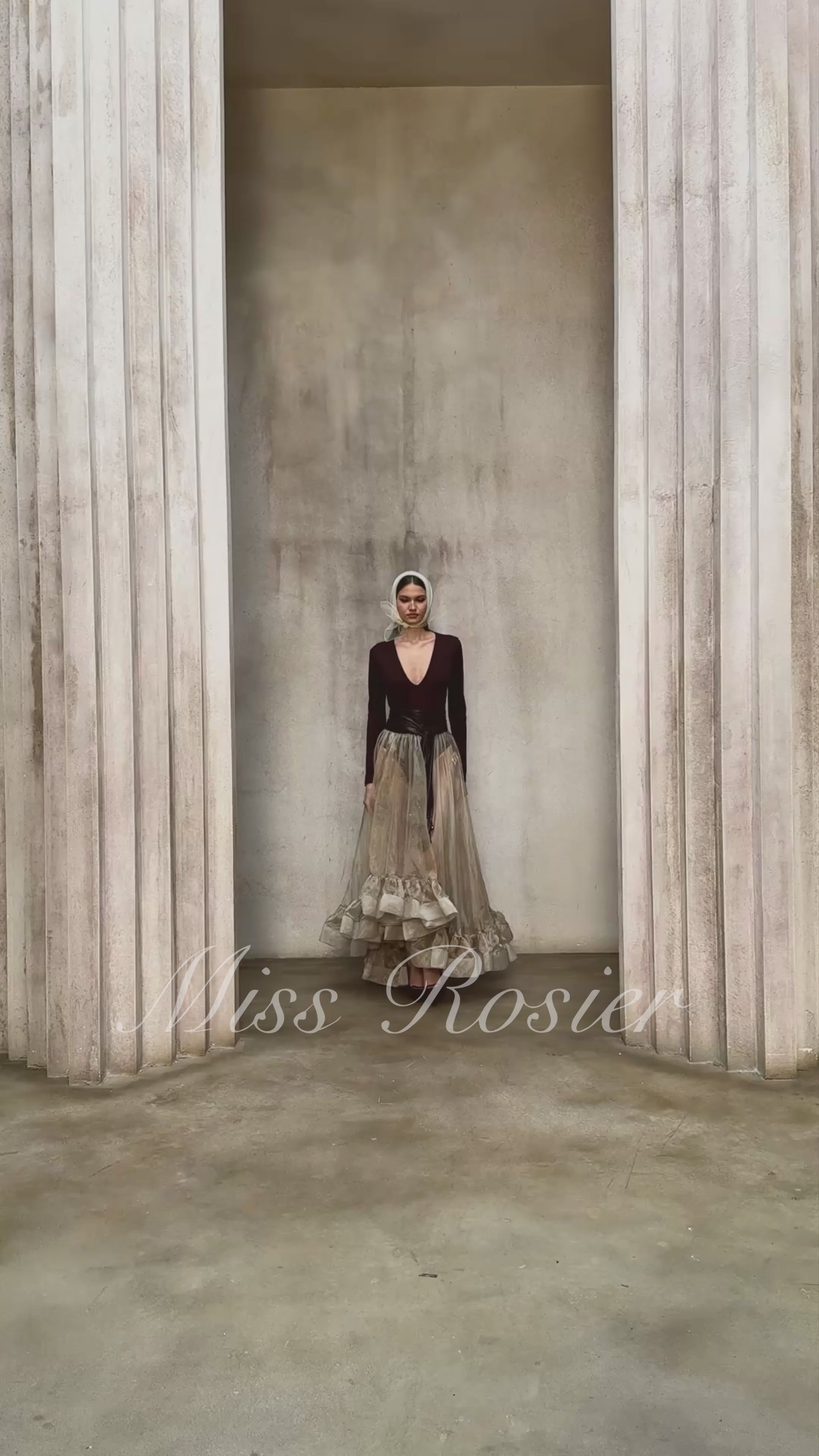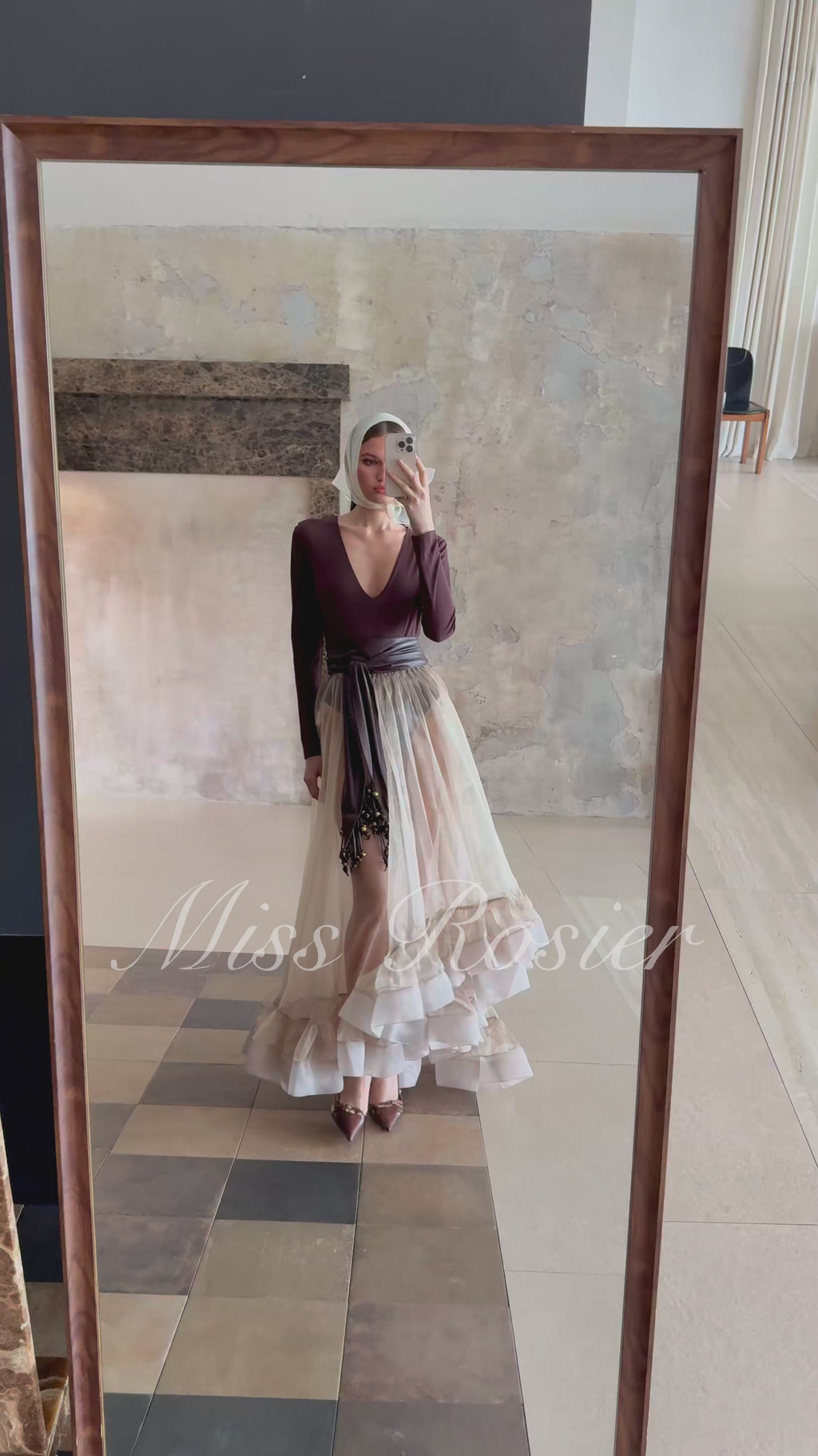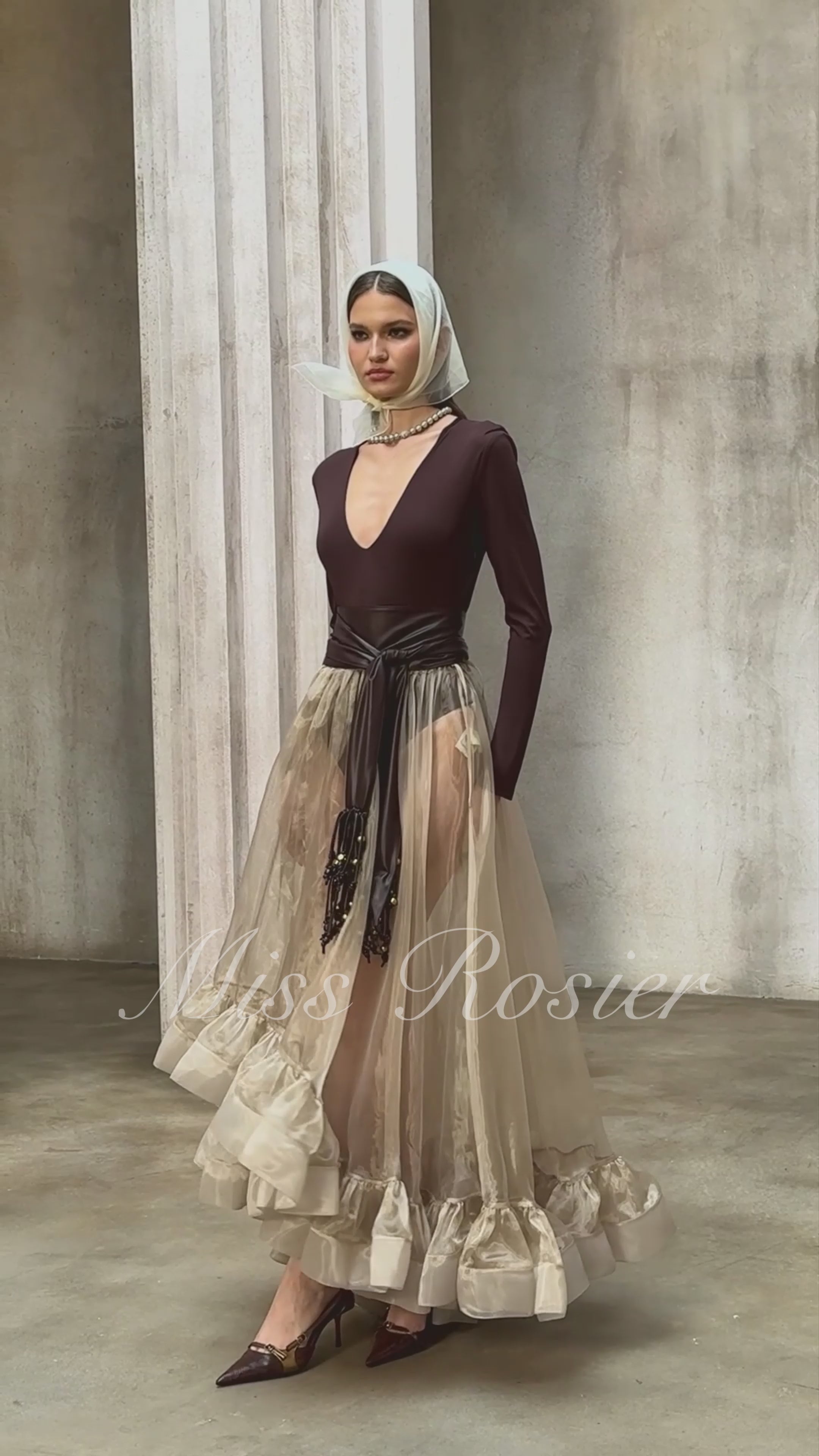 Paula Brown Bodysuit & Neutral Organza Skirt Set (Without Belt)