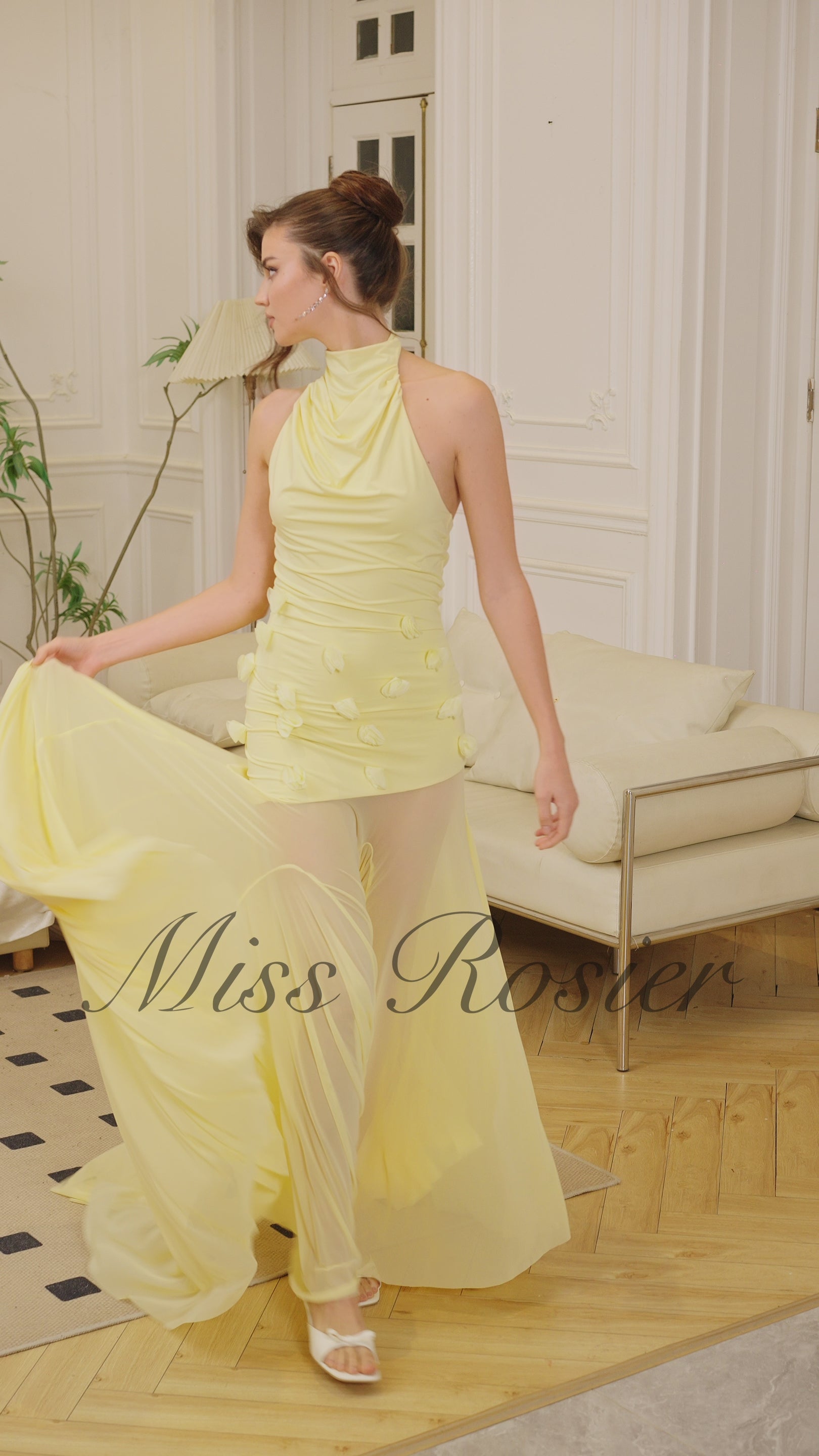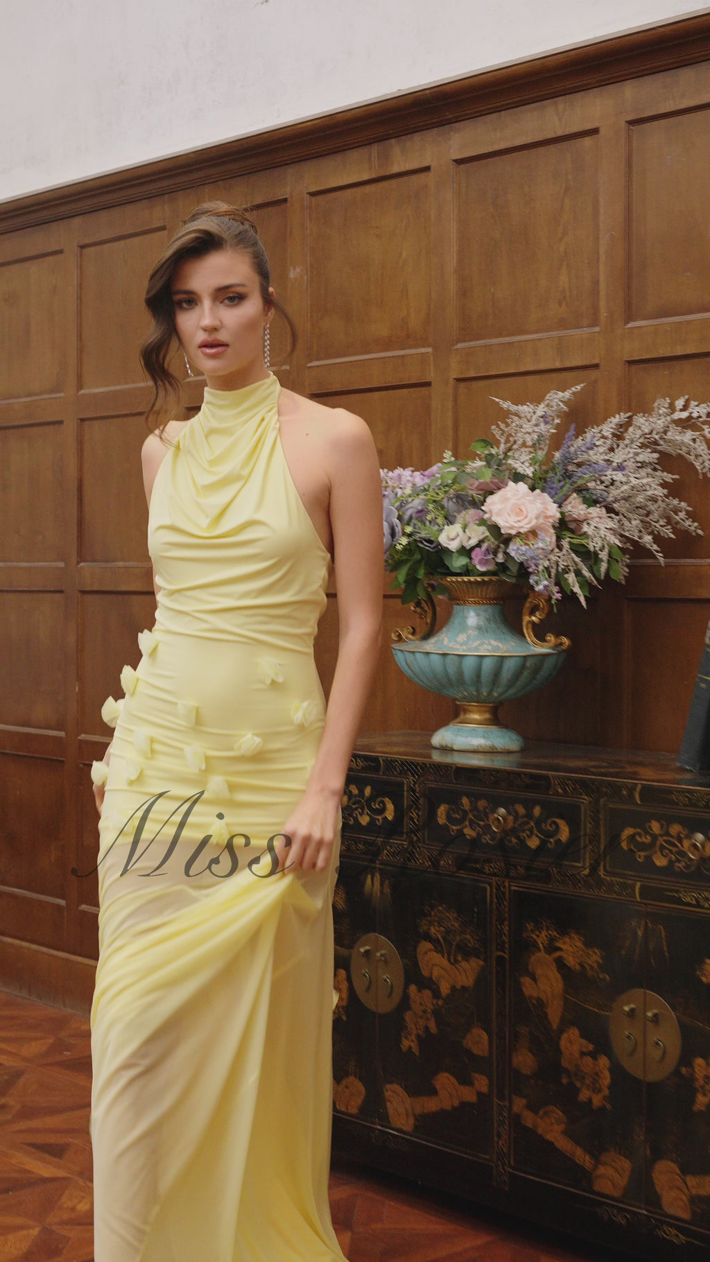 Yvette Yellow 3D Petal Mermaid Maxi Dress